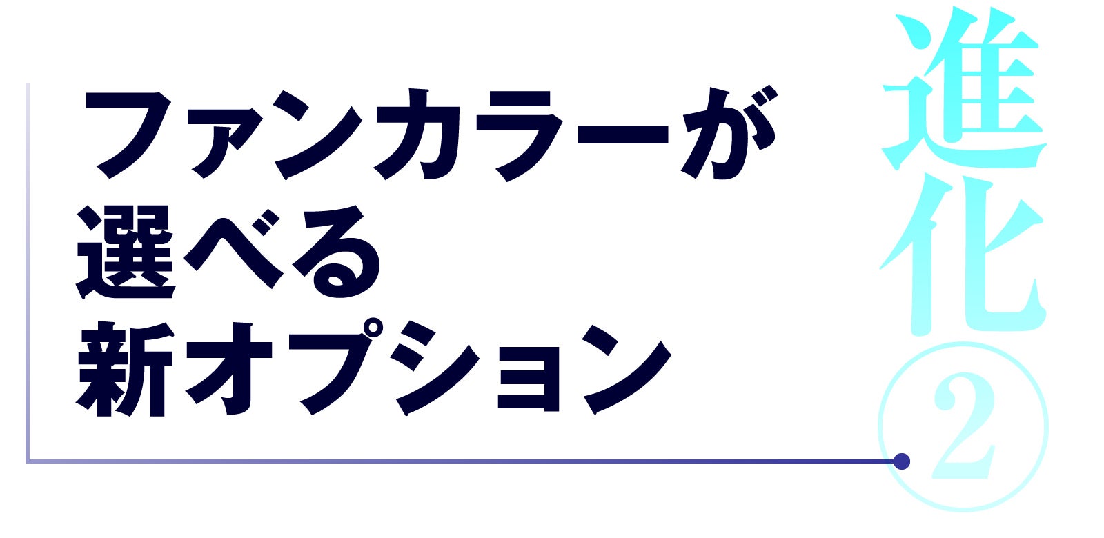 今回から、オプションリターンとしてファンカラーを2色から選択可能になりました。