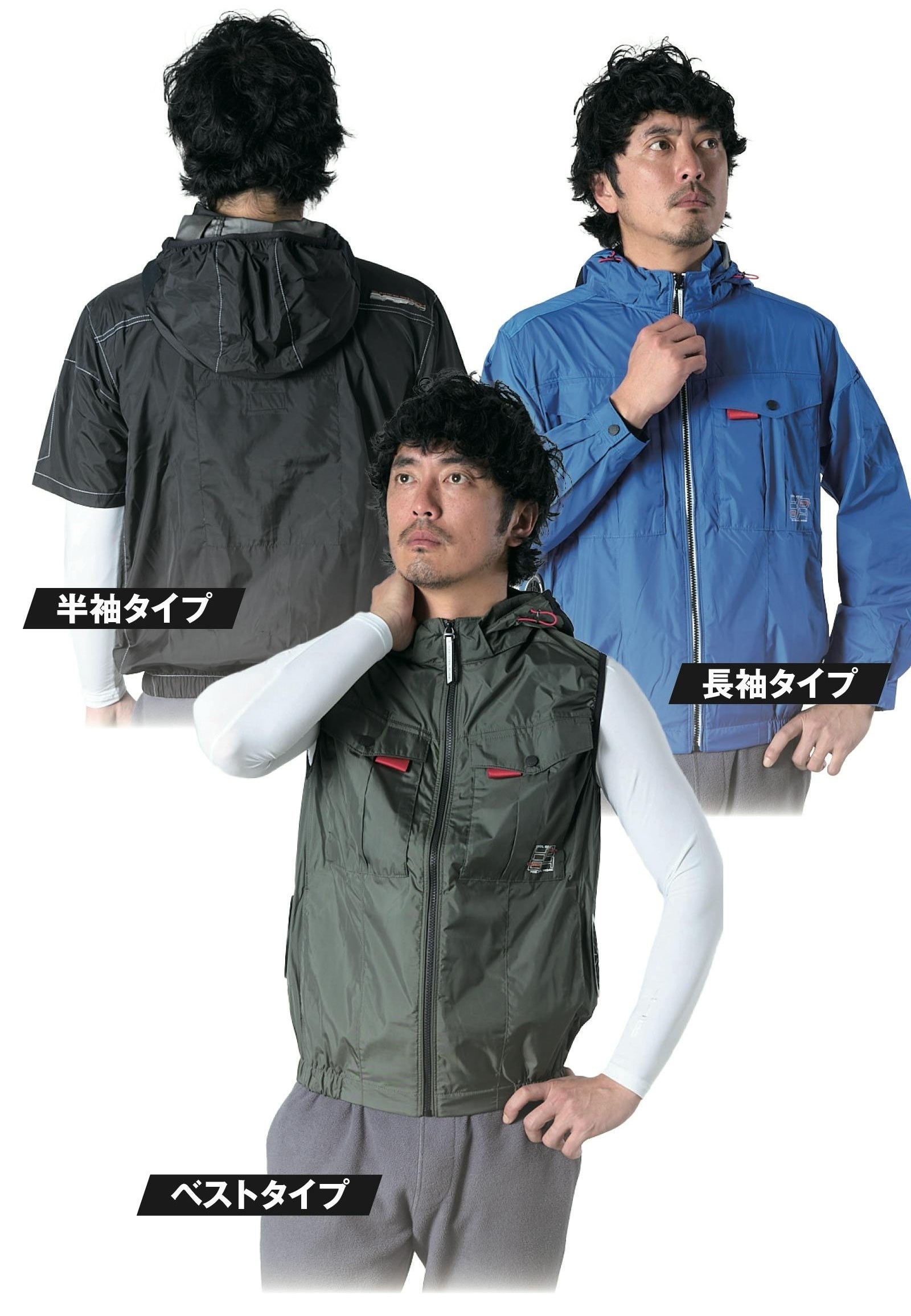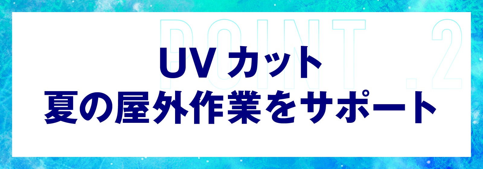真夏の屋外で気になる紫外線にも配慮し、UVカット仕様を採用。暑さ対策と同時に、日差し対策も行える一着です。