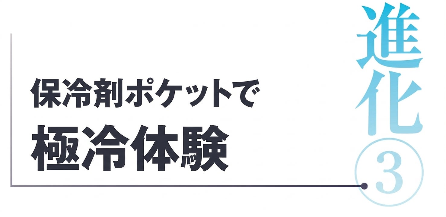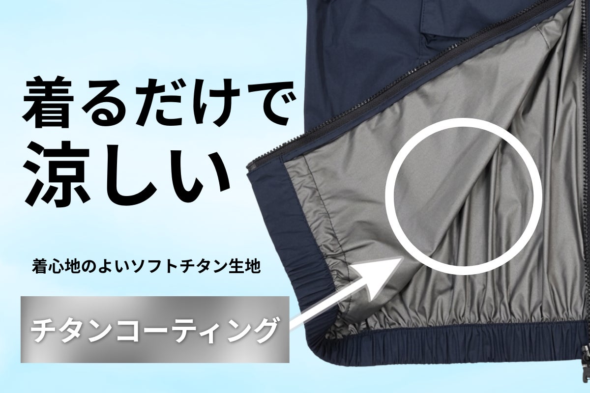 チタンの遮熱+保冷剤の直接冷却で、酷暑の現場も圧倒的に涼しく!