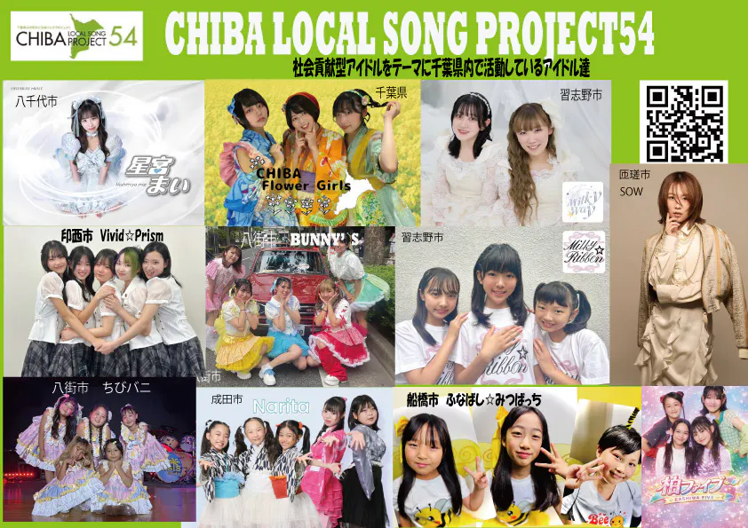 津田沼から全国に、そのはじめとして2024年4月~私どものノウハウを活かし、千葉県内にアイドル&シンガーの立上げをスタートしました(CHIBA LOCAL SONG PROJECT54)。テーマは社会貢献、各市町村、団体のPRソングを制作し地元の人達で運営する初めての取組です(The ご当地)。2年たった今、8市町4団体で取組がスタートし活動しています。