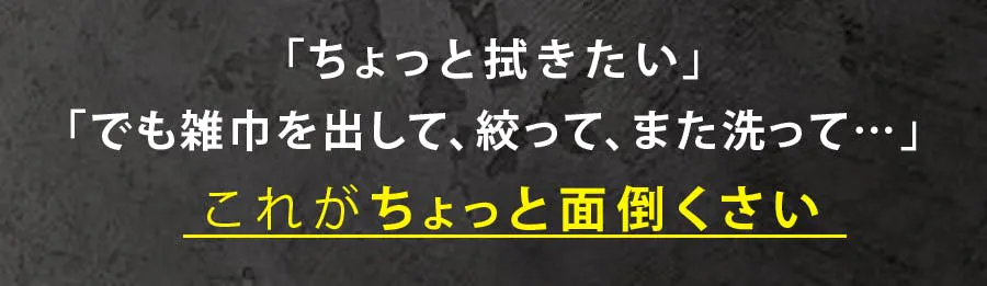 シンク横の調理台スベースは、水浸しになりやすく、調味料もこぼれやすいエリアですが、「Quickley-クイックリー-」さえあれば綺麗に拭き取ることができます。