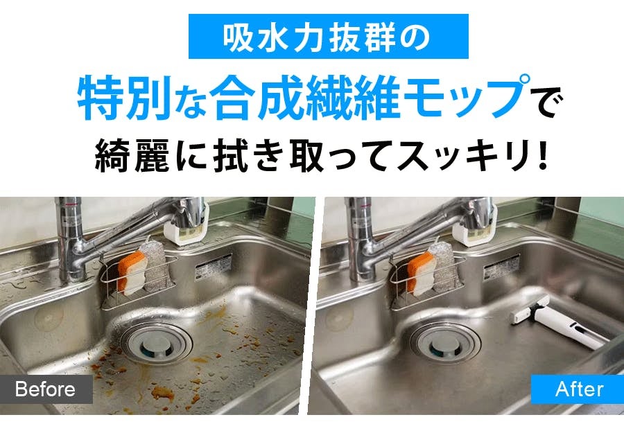 シンク横の調理台スベースは、水浸しになりやすく、調味料もこぼれやすいエリアですが、「Quickley-クイックリー-」さえあれば綺麗に拭き取ることができます。