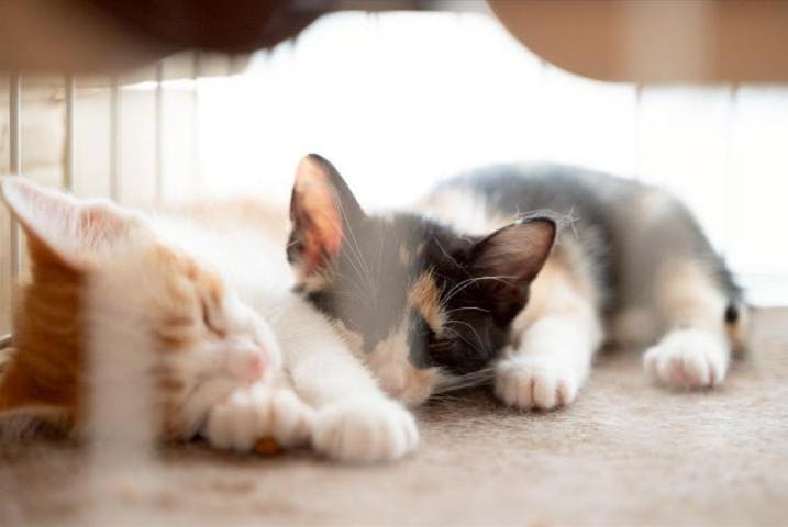 入学前のミータンちゃん。横にいる兄弟のセシルくんと一緒に入学しました。特徴的な顔の模様がとてもかわいく、元気いっぱいの子猫で、