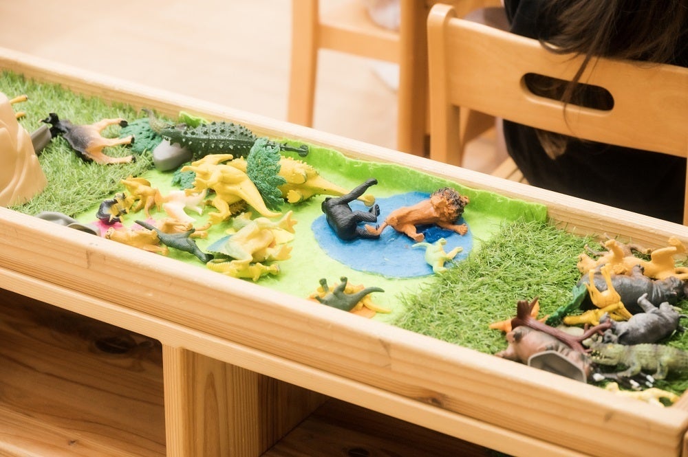 身体や指先を使ったりできる設備もある、児童発達支援施設の室内。