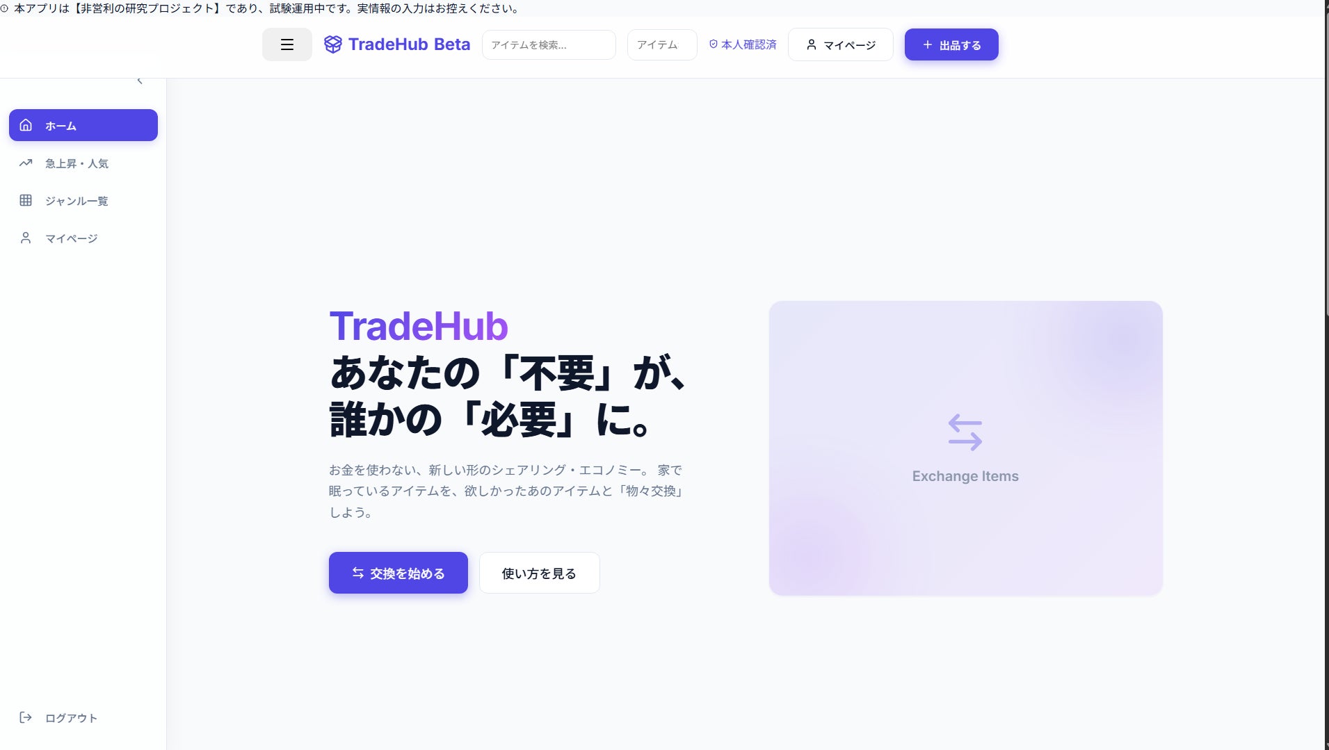 一人の学生の挑戦ではありますが,この『TradeHub』を、誰もが安心して利用できる「新しい時代の物価高対策インフラ」へと育て上げるため,全力を尽くしています.