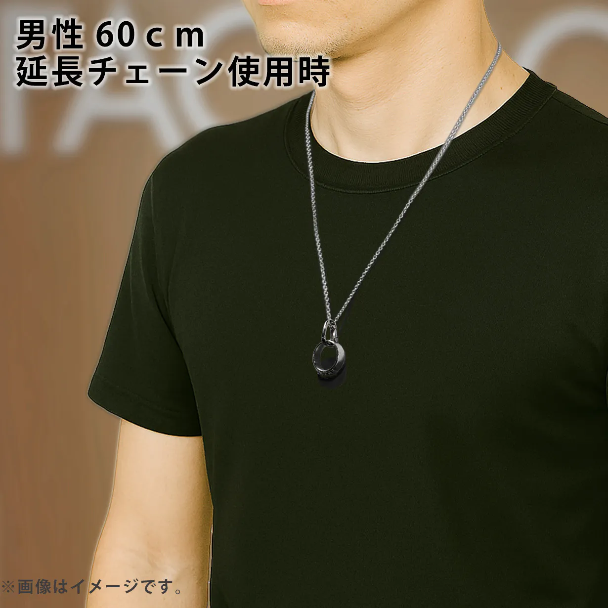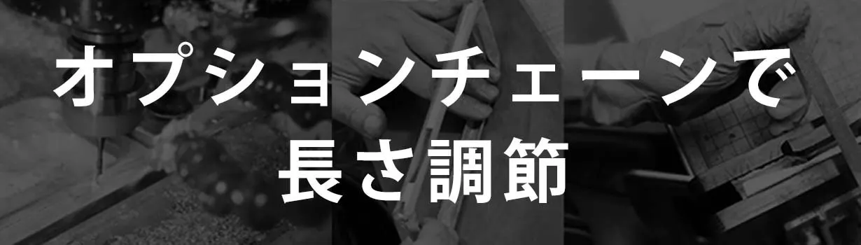 標準チェーン長さは50cm。オプションリターンの延長チェーンで10cm長さが伸ばせます。季節やファッションでご自分で長さを調節することもできます。
