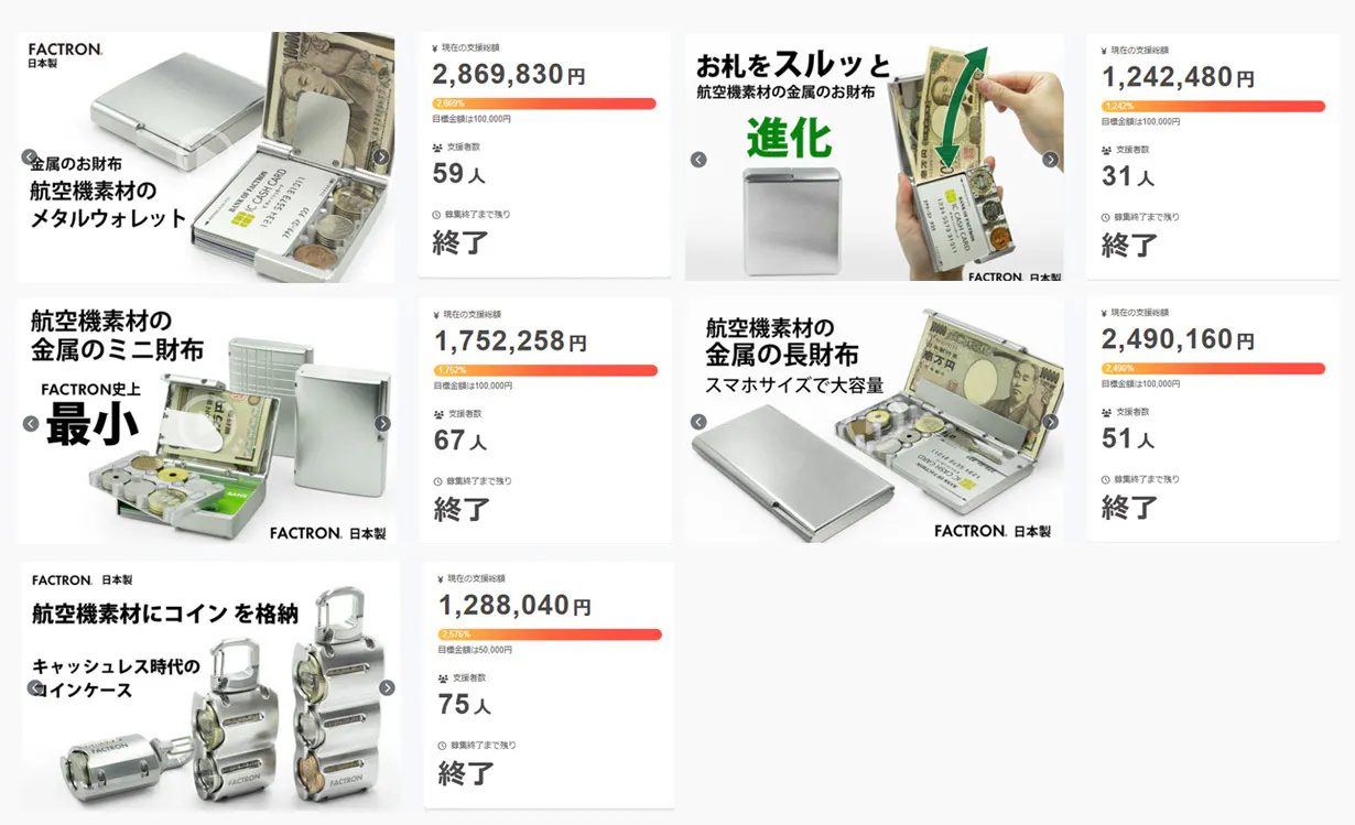 FACTRONのCAMPFIREでの過去のプロジェクトでは、本当に沢山のご支援をいただいてまいりました。皆様からのご支援や応援はFACTRONのものづくりの大きな励みです。