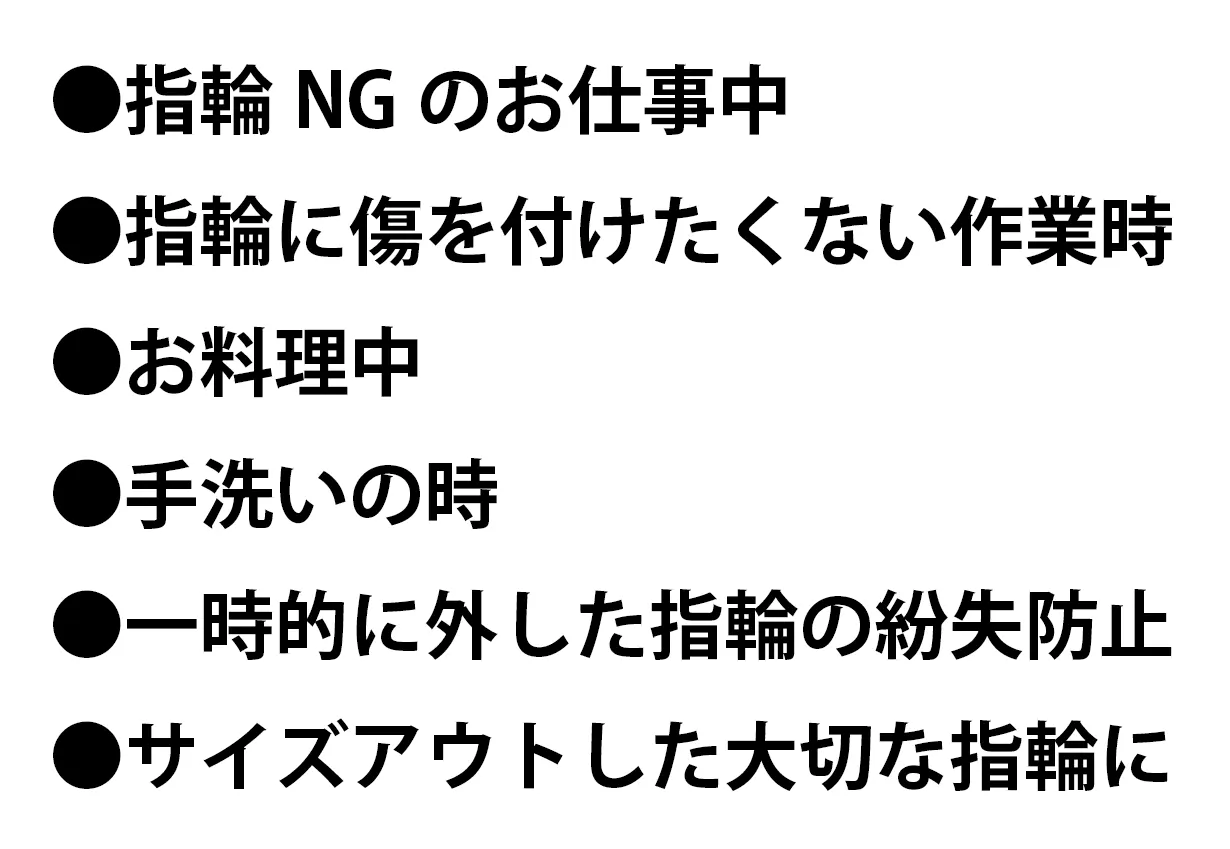 作業、お料理、手洗い、ハンドクリームを塗るとき等で、一時的に指輪を外す時に。