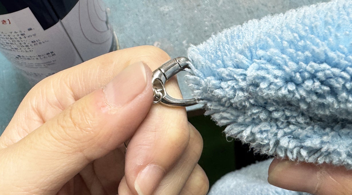 リングホルダーペンダントは、サージカルステンレス・チタン共にお手入れで何度でも輝きがよみがえります。