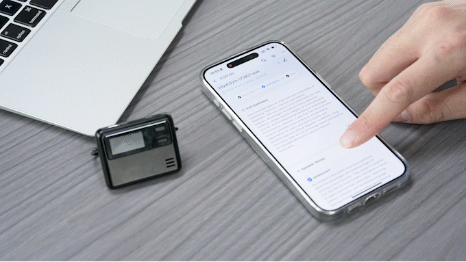 「AuralAI」は電源オンなど複雑な操作は一切不要、録音したいときは本体の録音ボタンを上へスライドするだけ!いつでもどこでもワンタッチで録音を開始できるので、重要な会話からふと思いついたアイデアまで逃さずに記録できます。録音のチェックや再生なども必要最低限の操作で行うことが可能なので、初心者でも簡単に扱えます。