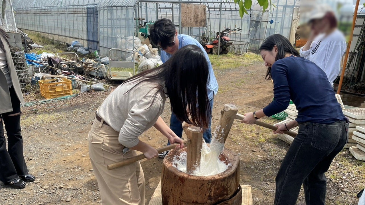 先日、畑メンバーが「餅つきしたい!」と言ってきたので、ご近所の先輩農家さんから臼と杵を借りてきました。