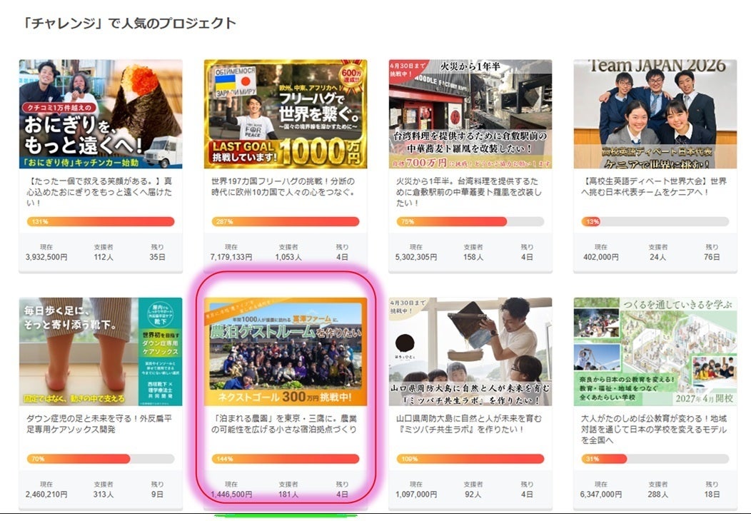 と、お願いしている中も一日で12人のご支援くださり、再びチャレンジ部門で人気プレジェクトに再浮上!本当に本当にありがとうございます!