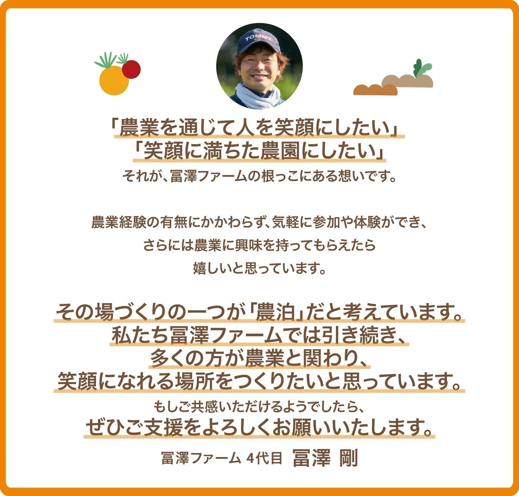 はじめまして。冨澤ファーム4代目の冨澤剛(とみざわたけし)と申します。