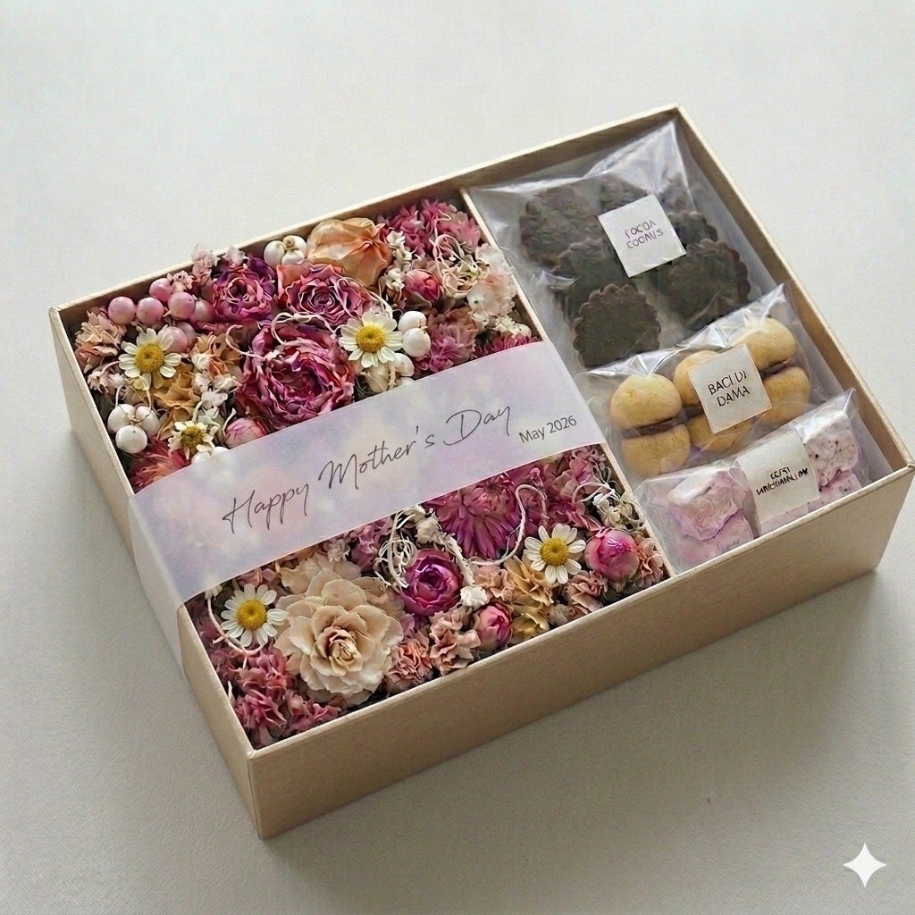 2026/04/07 00:30クラファン6日目‼︎本のリターンや本のスポンサー含め、6日で15名からのご支援をいただきました!皆様本当にありがとうございます‼︎そんな中で現在9名にご支援いただいてる、人気リターンの母の日ギフトの詳細をお伝えしたいと思い活動報告させていただきます。準備期間をいただきたいため、通常の支援期間より短く設定させていただいておりますので母の日ギフトをご希望の方はお忘れないようにご注意ください♪𖡼.𖤣𖥧𖡼.𖤣𖥧𖡼.𖤣𖥧𖡼.𖤣𖥧𖡼.𖤣𖥧𖡼.𖤣𖥧【母の日ギフトボックス】 大切なお母さんへ、 「ありがとう」の気持ちを届けませんか? 母の日限定で、お花とお菓子を詰め込んだギフトボックスをご用意しました。 自社で制作したドライフラワーと"last note桜新町"河崎賢司シェフ特製クッキーの限定セットです。 箱を開けた瞬間に笑顔になれる、 母の日のための特別なセットです。 【お菓子の内容】 ・クッキー(バーチディダーマ)5個 ・ナッツクッキー(ディアマンテ)5個 ・マシュマロ6個 【原材料】 バター(生乳(国産))、砂糖、小麦粉、アーモンド、牛乳、チョコレート、ナッツ(ピスタチオ・ヘーゼルナッツ・くるみ)、カカオ、カシス、ゼラチン 【アレルギー表示】 乳・小麦・アーモンド・くるみ・ゼラチン ※同一工場でオレンジ、キウイ、バナナ、りんご、ももを含む製品を製造しています 【保存方法】 直射日光・高温多湿を避けて保存𖡼.𖤣𖥧𖡼.𖤣𖥧𖡼.𖤣𖥧𖡼.𖤣𖥧𖡼.𖤣𖥧𖡼.𖤣𖥧一つ一つ丁寧にお作り、お届けいたしますのでお楽しみに(^^) もっと見る