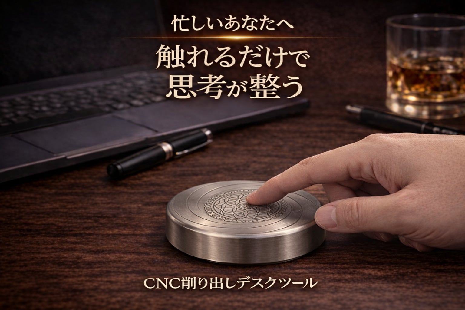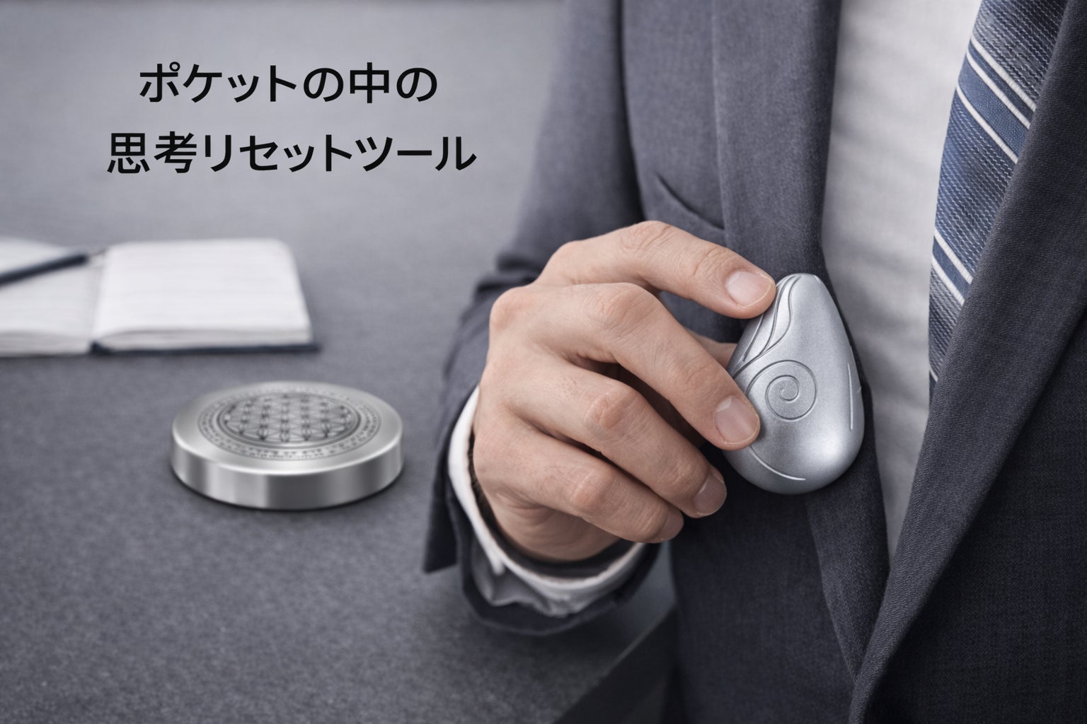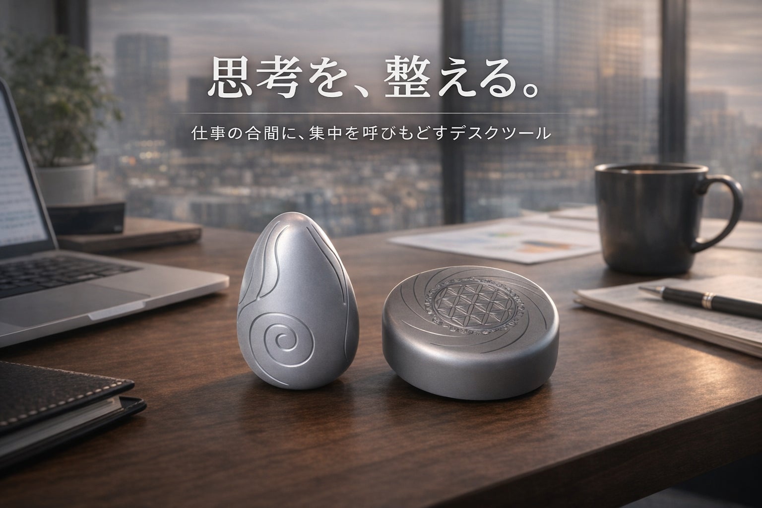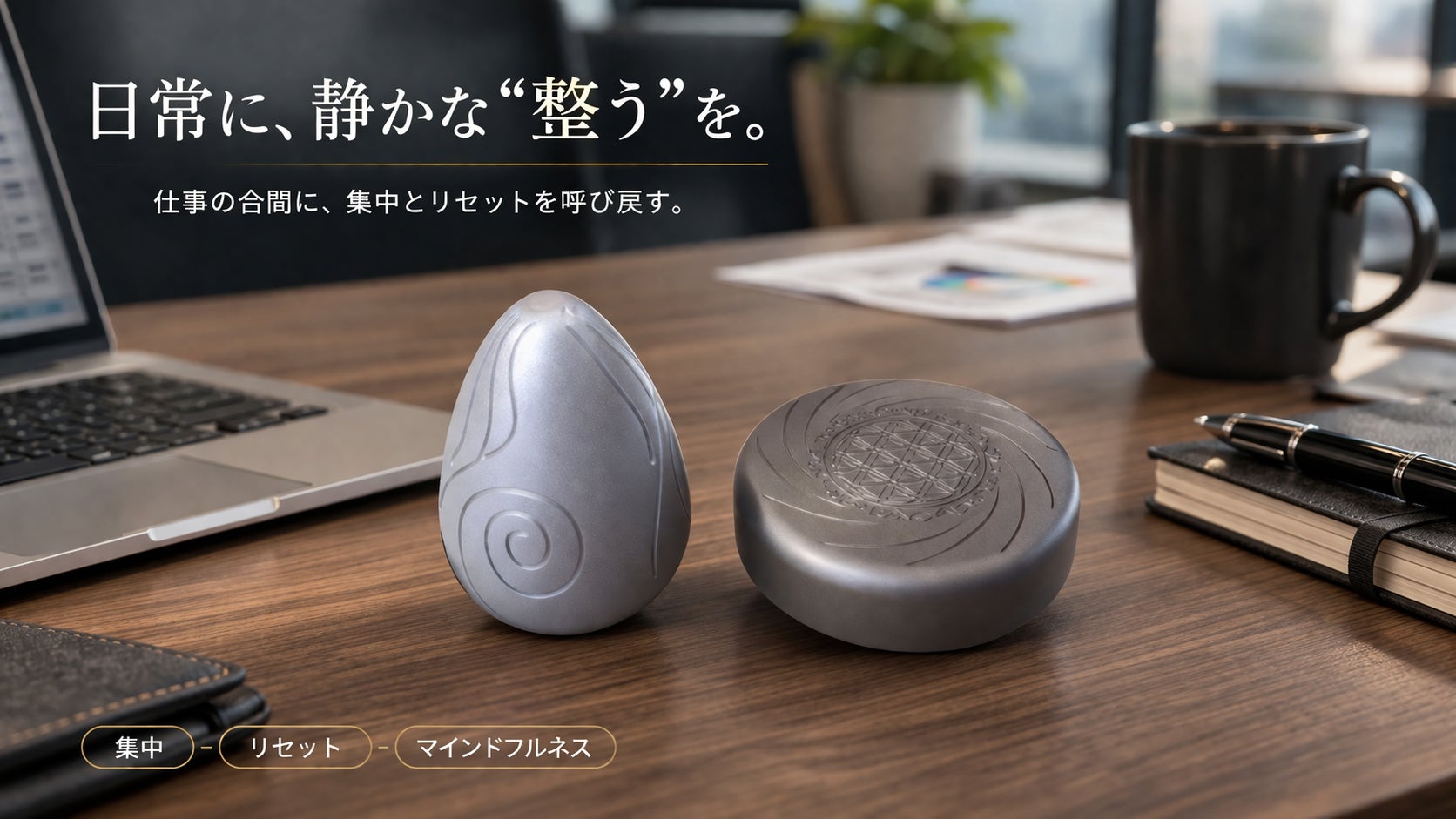 指先で触れることで思考を整えるための金属ツールです。忙しい日常の中で、数秒でも思考を止める時間を作るために設計されています。