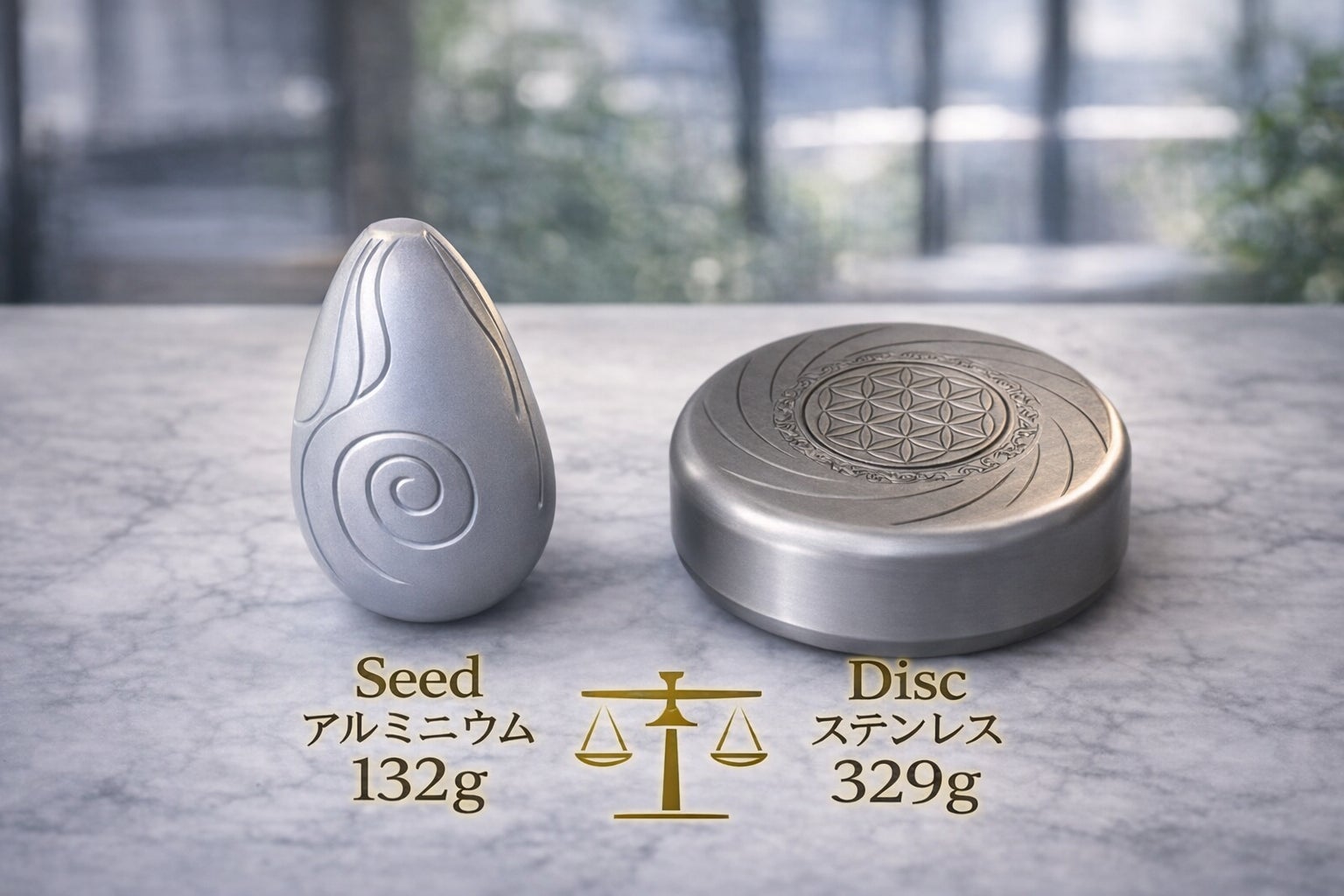 Seedは手のひらに収まるサイズ、Discは指で触れやすいサイズに設計されています。詳細サイズは商品ページにてご案内いたします。