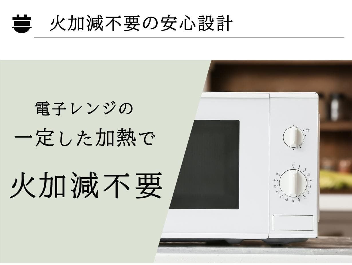 電子レンジの一定した加熱により、 初心者でも失敗なく美味しいご飯が炊けます。