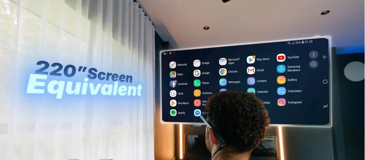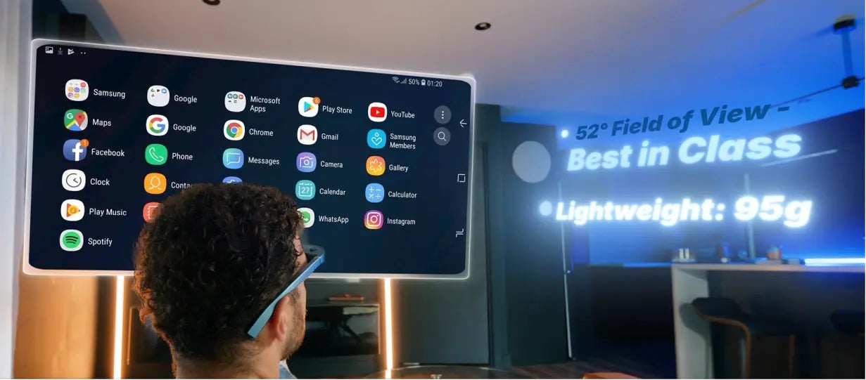 A. 最大52°の広視野角で、映像が視界全体に広がるような没入体験が可能です。従来のARメガネに比べて、圧倒的な広さを実感いただけます。