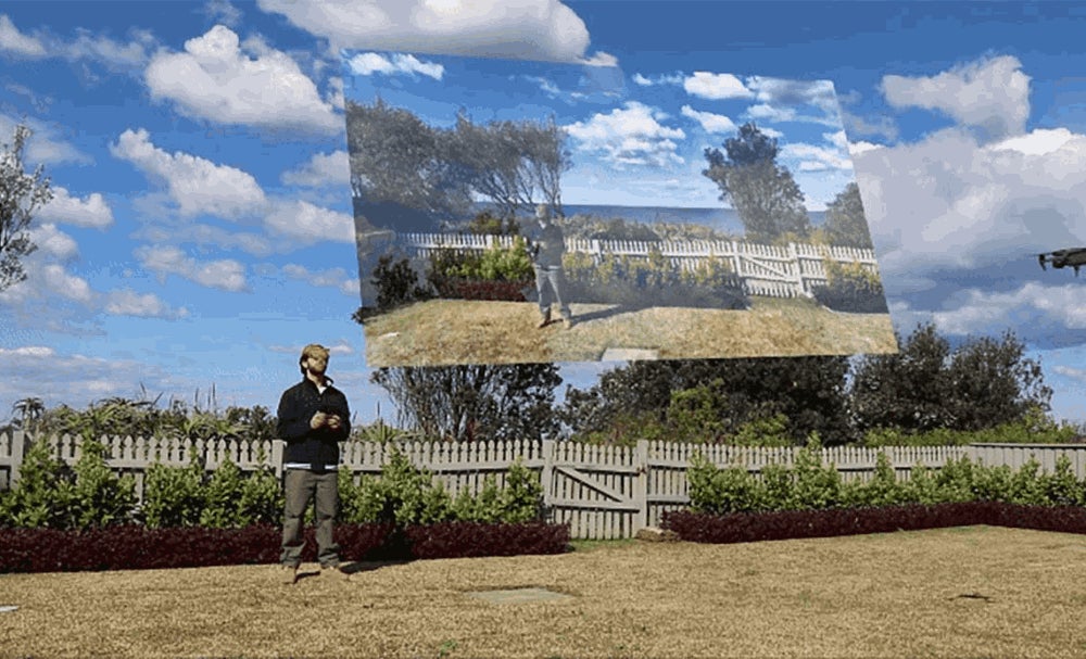 A. 「ドローンイーグルアイ・イメージトランスミッション」機能により、リアルタイムで映像を視界内に表示できます。点検、空撮、空間探索などにご活用いただけます。