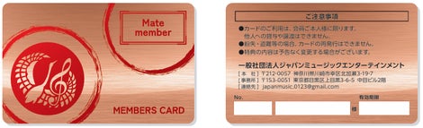 A5 一般社団法人ジャパンミュージックエンターテインメントが発行する会員制度です。弊社主催イベントに参加される場合「会員カード」提示で1ドリンクサービス させていただきます。本来、初回登録2,200円ですが本プロジェクトをご支援くださいました皆さま全員に付与させていただきます。ぜひ弊社所属タレントの応援にご活用ください。