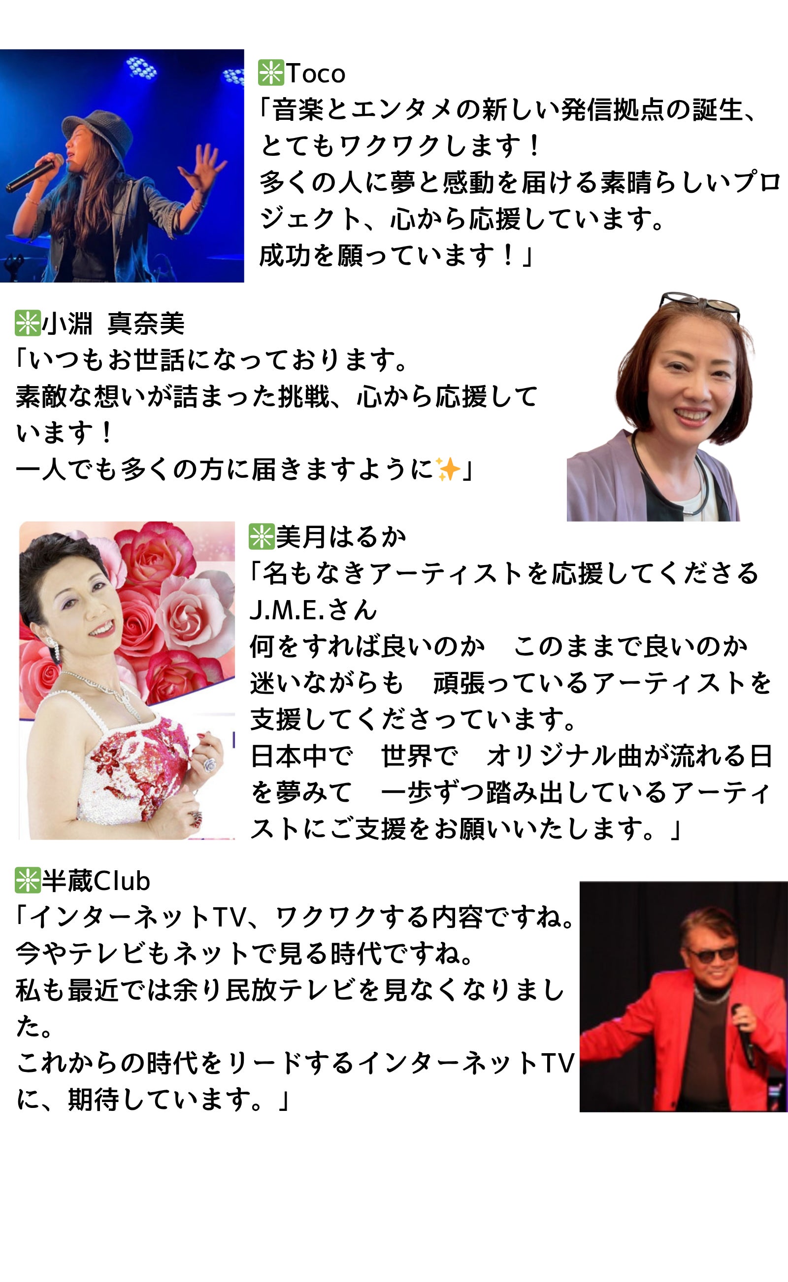 以下、J.M.E.の活動そのものを応援してくださる方。