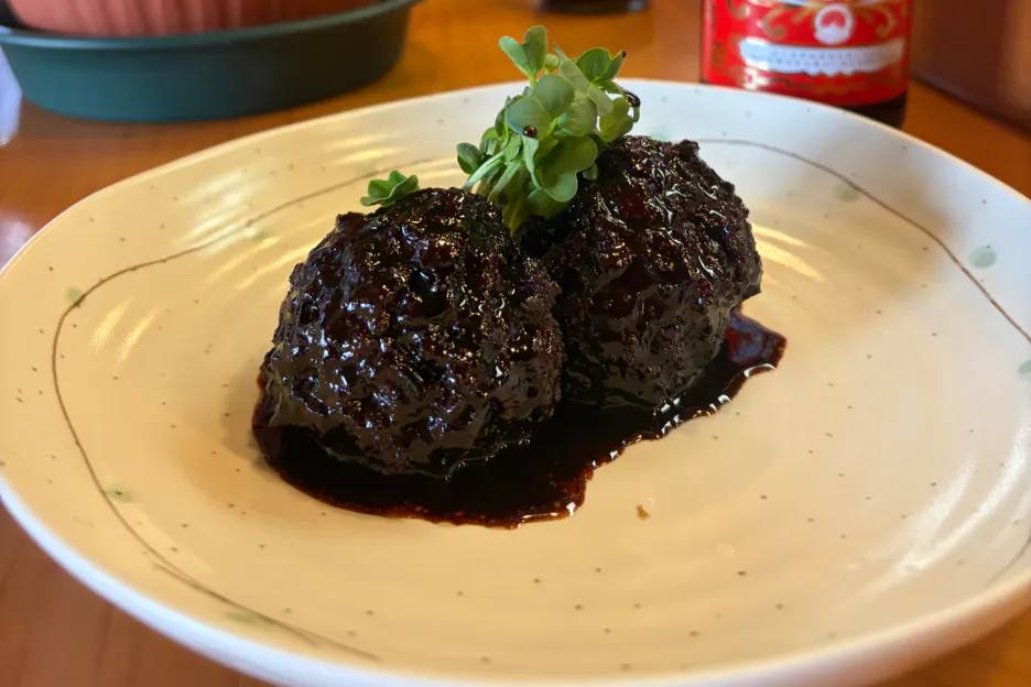第一弾として「爆弾肉団子醤油煮込み」を発売展開していきたいと思ってます。一つ子供のこぶし大位有り全体黒色で見た目のインパクトは強烈だと思います、又味付けも従来の甘酢ではなく独自の斬新な味付けに仕上げてます。