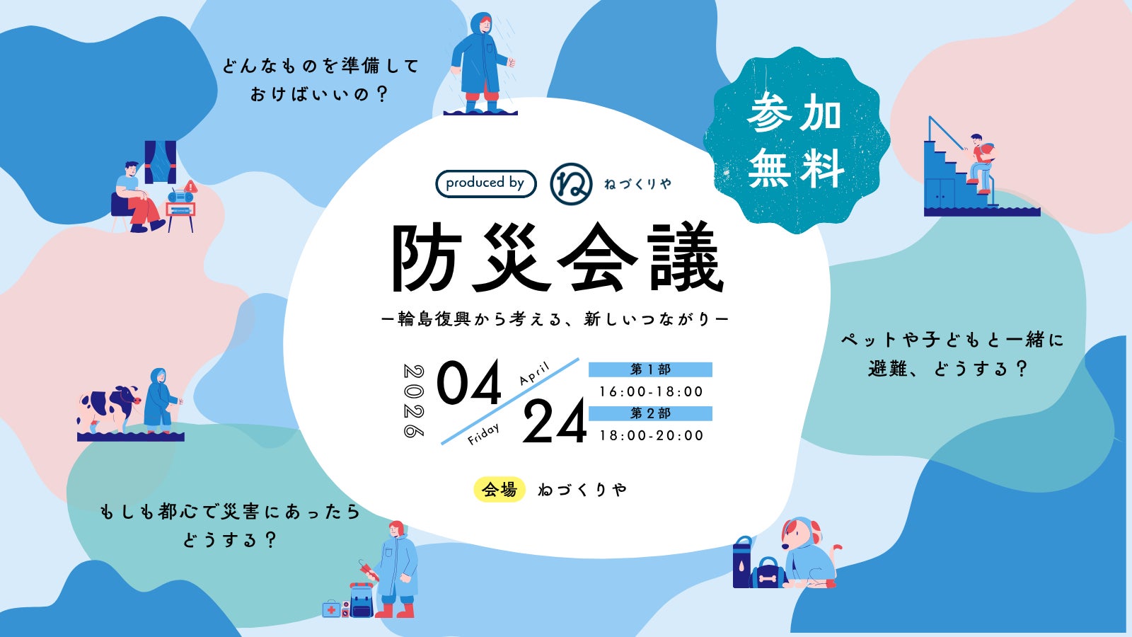 前日の4月24日、そしてイベント終了後の26日夜に、ねづくりやにて防災をテーマにしたイベントを開催いたします。