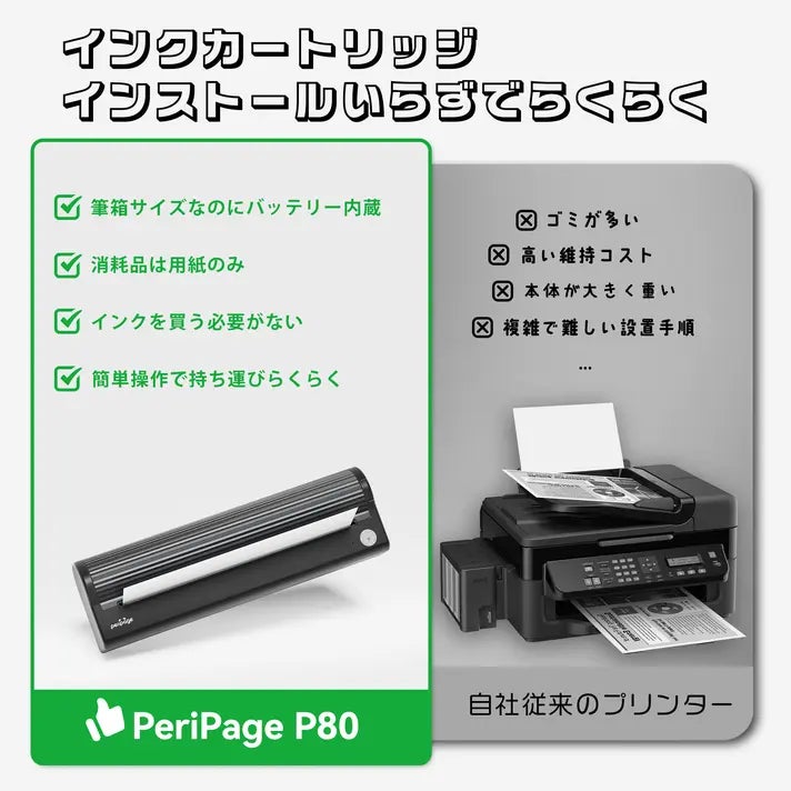 コンパクトでインクやトナーが不要だから、いつでもどこでも印刷をサポートしてくれる頼れる一台です。
