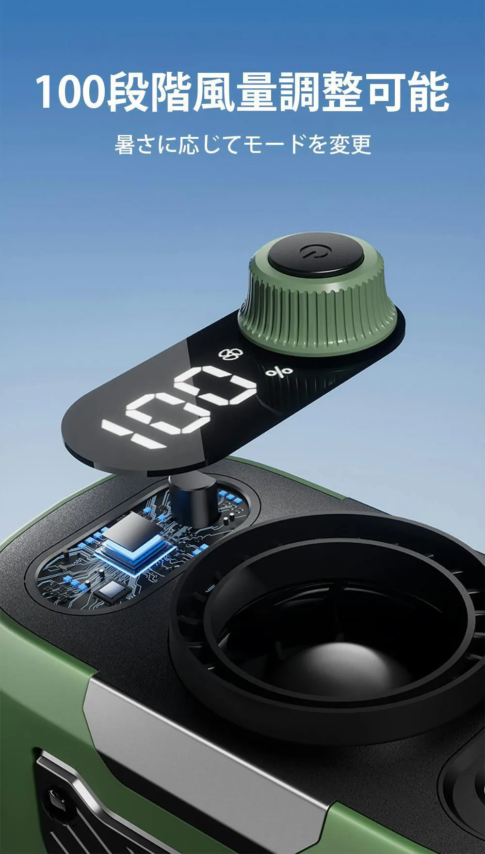 また、風量を100段階に調整でき、暑さに応じて調整できます。