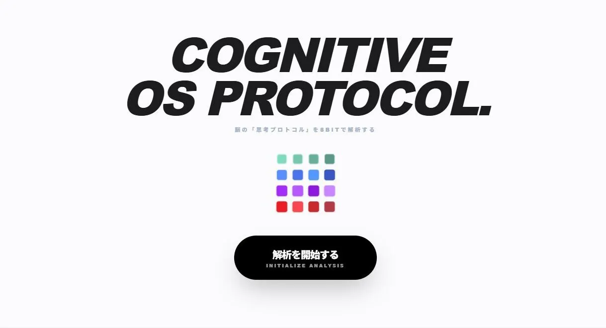 既存の心理学やタイプ理論を流用するのではなく、私自身が考案した「8つのビット(認知のON/OFF)」の組み合わせから16タイプを導き出しました。既存のレッテル貼りに囚われない、全く新しい「人間の仕様書(スペックシート)」を提供しています。