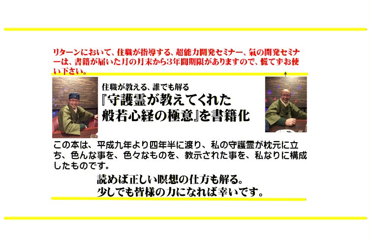 氣の開発セミナー、超能力開発セミナーは通常、個別にお申し込み頂いているサービスですが、今回特別にセットとしてお付けしてあります。