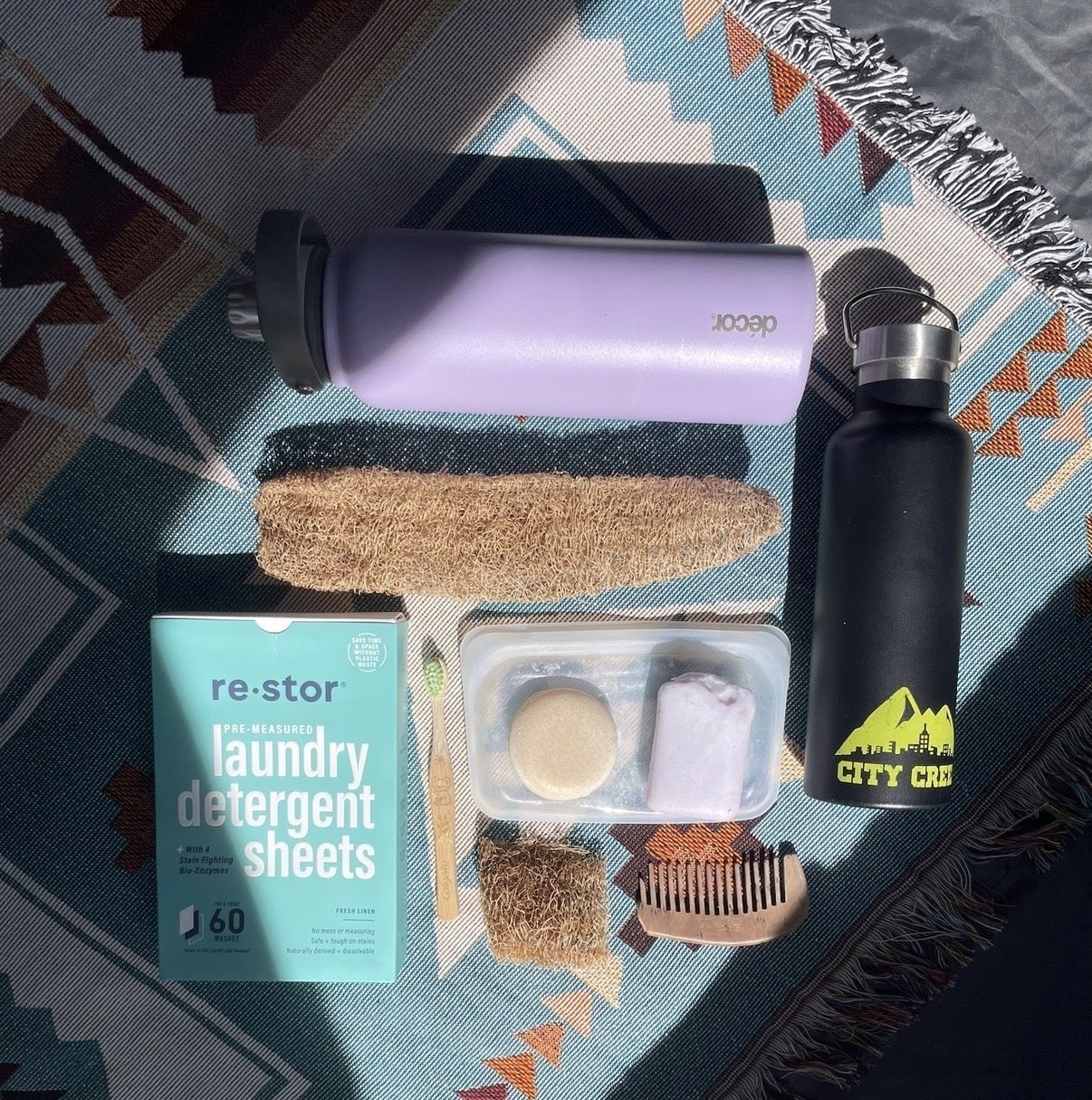 コンパクトで軽く、持ち運びにも便利なだけでなく、液体洗剤のようなプラスチックボトルが不要になります。しかも、化学繊維が使われてないので肌にも優しいです。