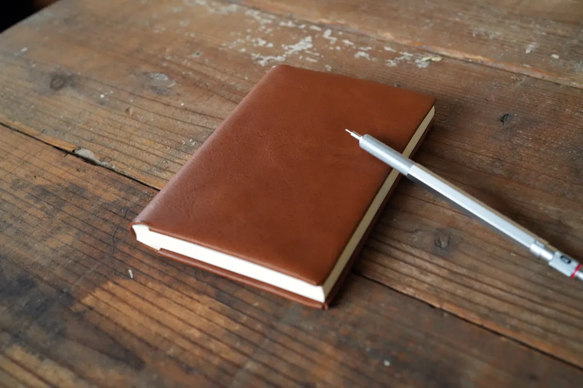 一枚革で包む、究極にシンプルなノートカバー。使うほどに育つ革と、特徴的な独自構造。