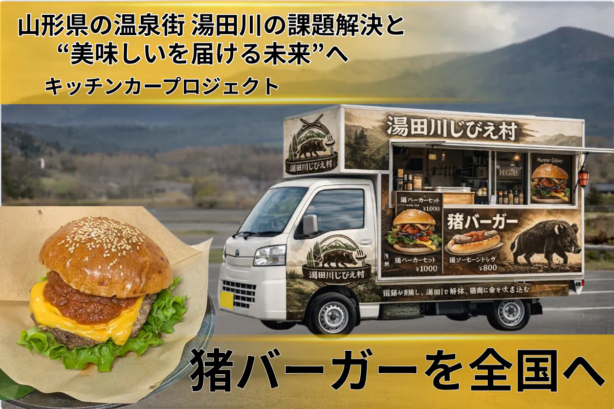 現在、副業として猪バーガーや牡丹鍋の提供を行っていますが、最近では他地域からの出店依頼をいただくようになりました。これは湯田川ジビエの品質と味が認められている証拠だと自負しております。キッチンカーがあれば、より多くの場所で、より多くの方々に湯田川じびえ村の魅力をお伝えできます。