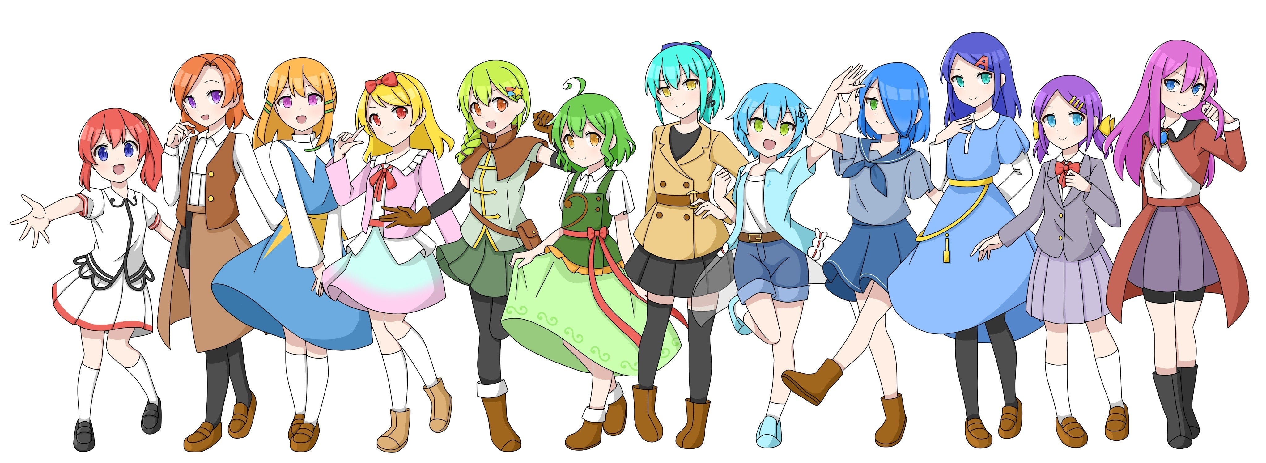 調性オンリーイベント主催者:祈香による調性擬人化創作「クロマティックレインボー」のイラストです。