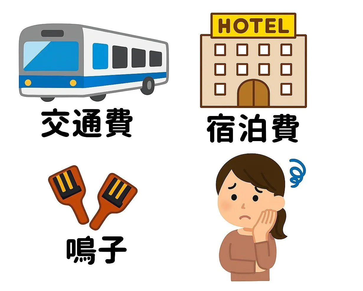 また、お祭りによっては参加費がかかるものや、遠方の祭りに参加する場合は交通費、宿泊費、新規でよさこいを始める場合は鳴子代もかかってきます。