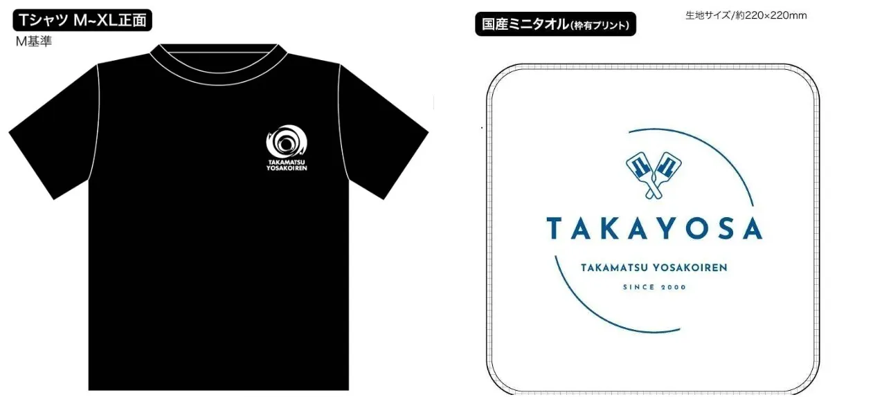 よさこいを象徴するミニタオル、Tシャツを組み合わせた、ファン必見のセット。