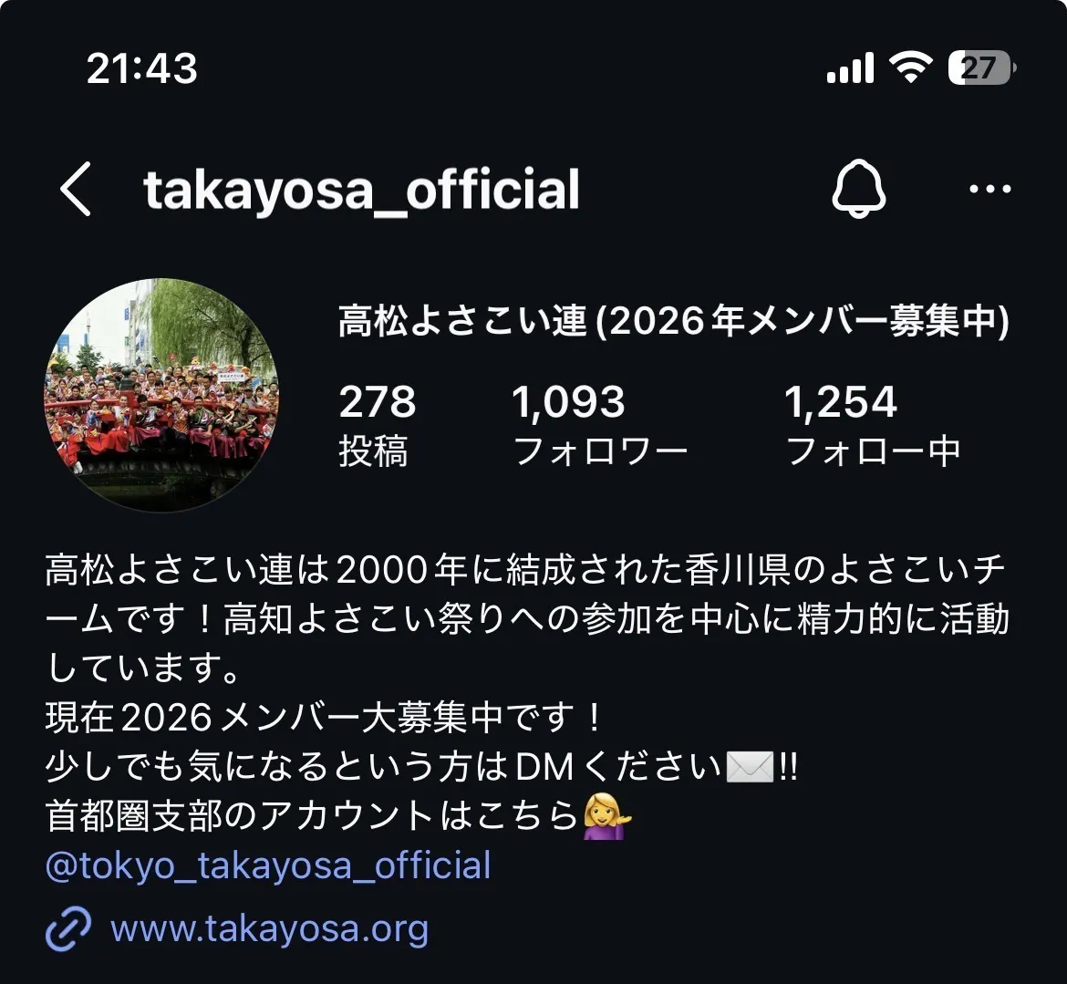 •高松よさこい連 公式Instagramにて協賛いただいた旨の記事を投稿いたします。