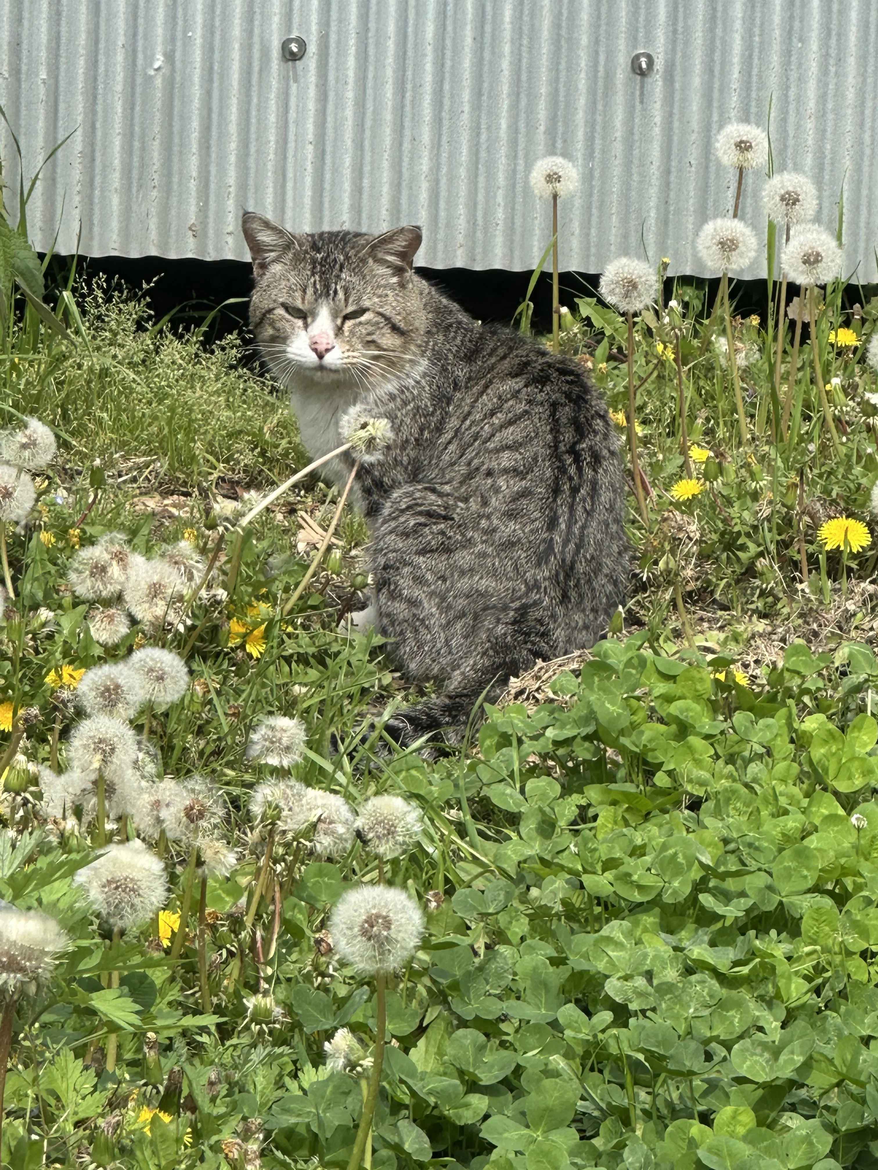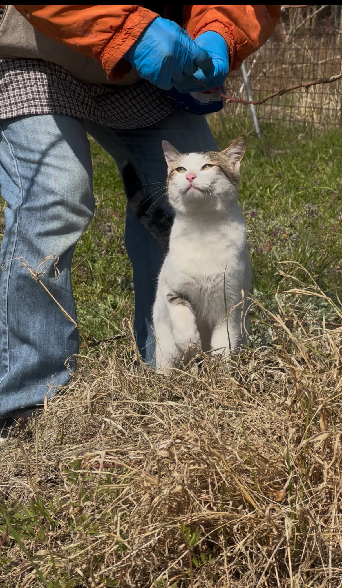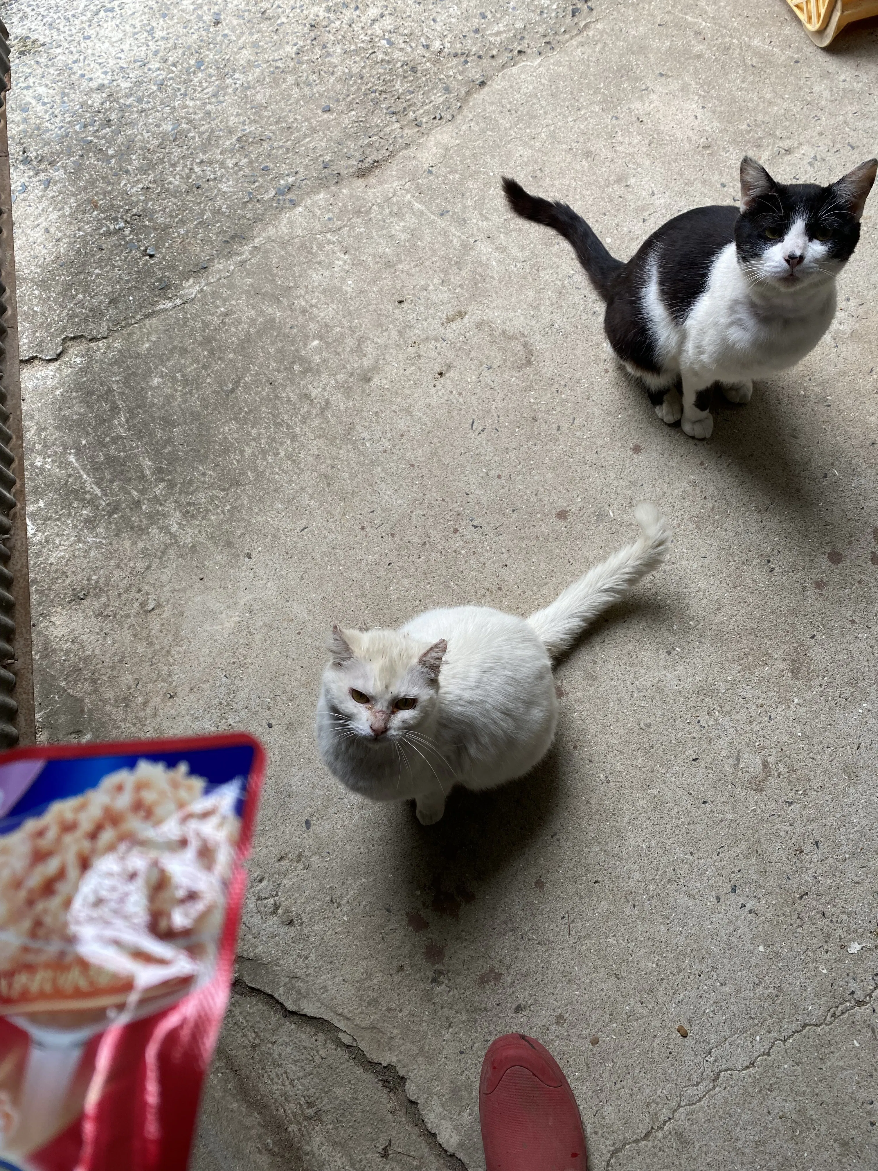 2017年ごろから耕作放棄地を開墾し桃を植えてきましたが、そのころ1匹の野良猫がやってくるようになりました。そして、ご飯をあげているうちに、また次の新たな野良猫がやってくるように。