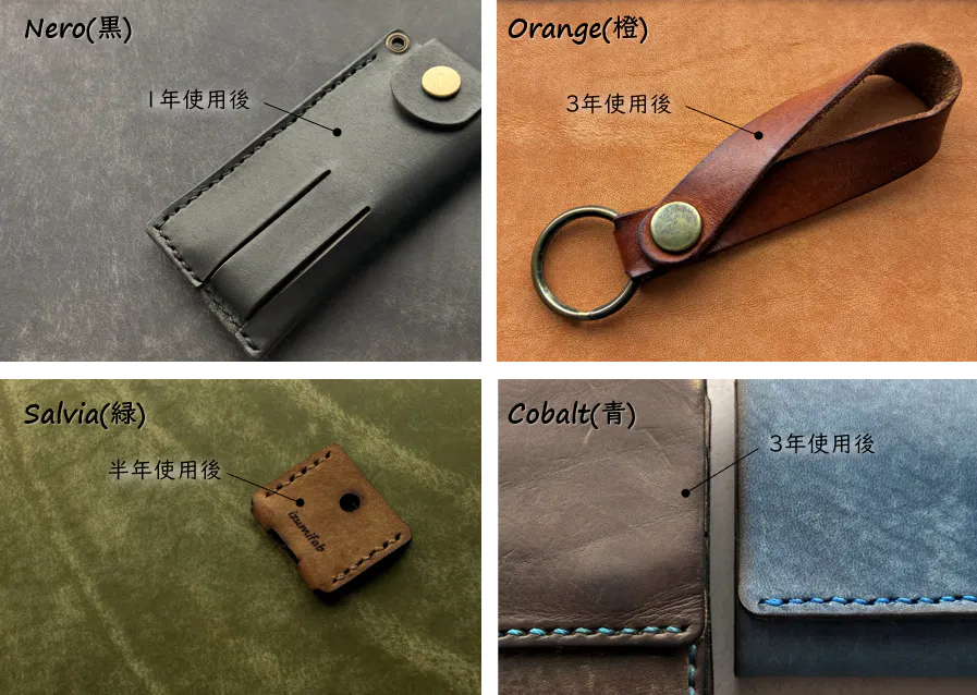 ・カラー:ネロ(黒)、オレンジ(橙)、コバルト(青)、サルビア(緑)