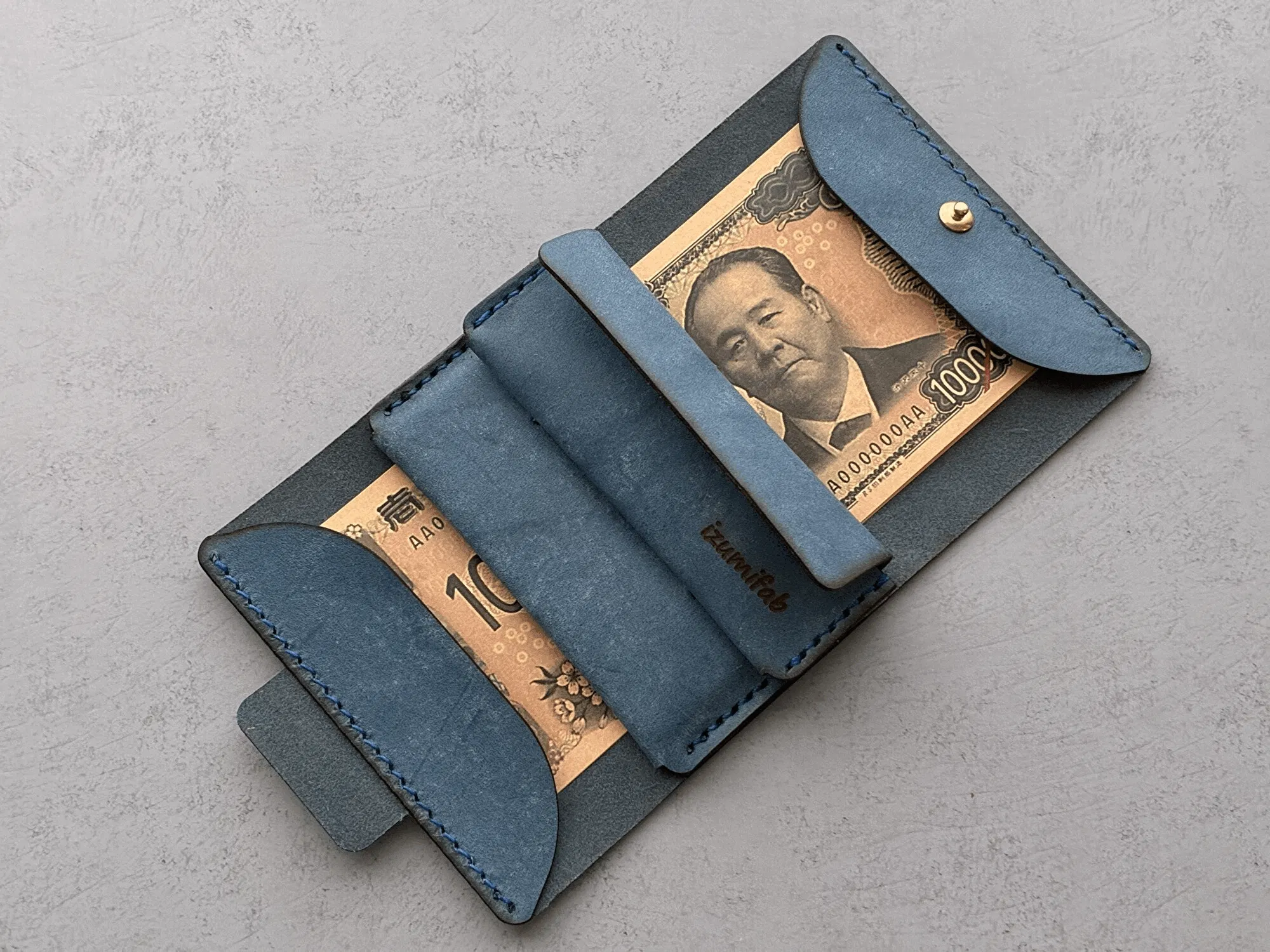 ・三つ折り財布でありながら、収納部を1面に集約し、二つ折り財布のような使用感