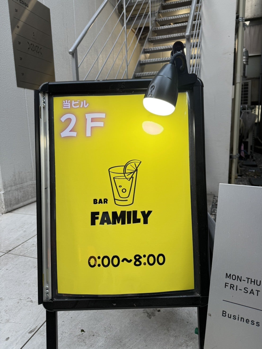 現在は恵比寿で間借りでBAR『FAMILY』を0時~8時で営業しております。