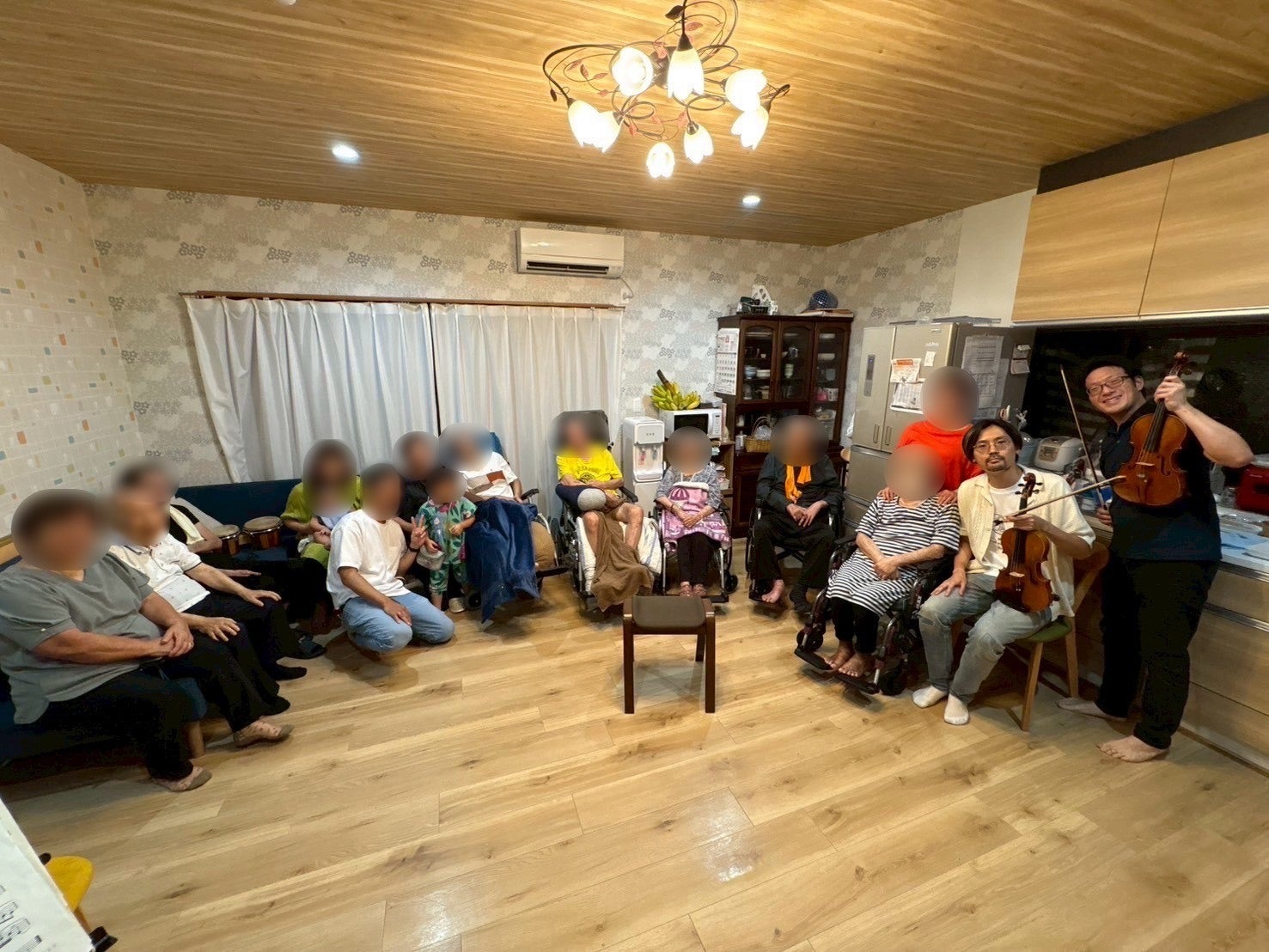 2024年7月、長野医師は在宅ホスピス「いきがいの家」を設立されて、2025年には﨑谷が初めてその場所を訪れ、患者様とご家族の目の前で演奏を行いました。