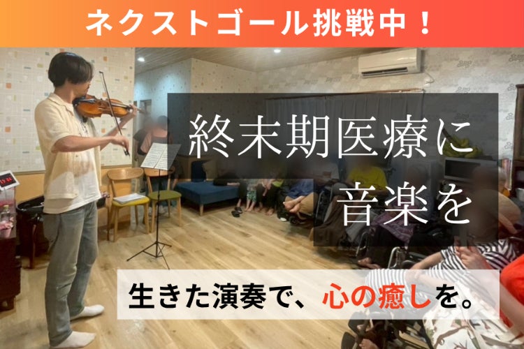 2026/04/02 11:51皆さま、たくさんのご支援をいただき、本当にありがとうございます。開始早々に目標金額を達成することができ、驚きとともに、感謝の気持ちでいっぱいです。今回の達成により、今年度の活動資金は確保することができました。まずはこのプロジェクトを、責任を持って実施してまいります。そしてここからは、来年度以降の継続開催と、活動の広がりを目指し、ネクストゴールに挑戦します。今回のネクストゴールでは、来年度以降の継続開催に加えて、小学生から音大生まで、若手音楽家にも現場に参加してもらい、音楽の持つ本来の可能性を共に考え、演奏家として大切な心を育む機会として広げていきます。参加する若手には、﨑谷もすべて同行し、演奏だけでなく、個々の患者さんに向けたベッドサイドでの音量や音の質、かける言葉や会話についても、長野医師および看護師の方々と一緒に考えながら伝えていきます。未成年の参加者については、保護者の帯同が必要となる場合もあり、その際の移動や滞在にかかる費用にも充てさせていただきます。なお、演奏に関しては、﨑谷自身も含め、すべてボランティアで行います。この取り組みを、一度きりで終わらせないために。引き続きのご支援を、どうぞよろしくお願いいたします。 もっと見る