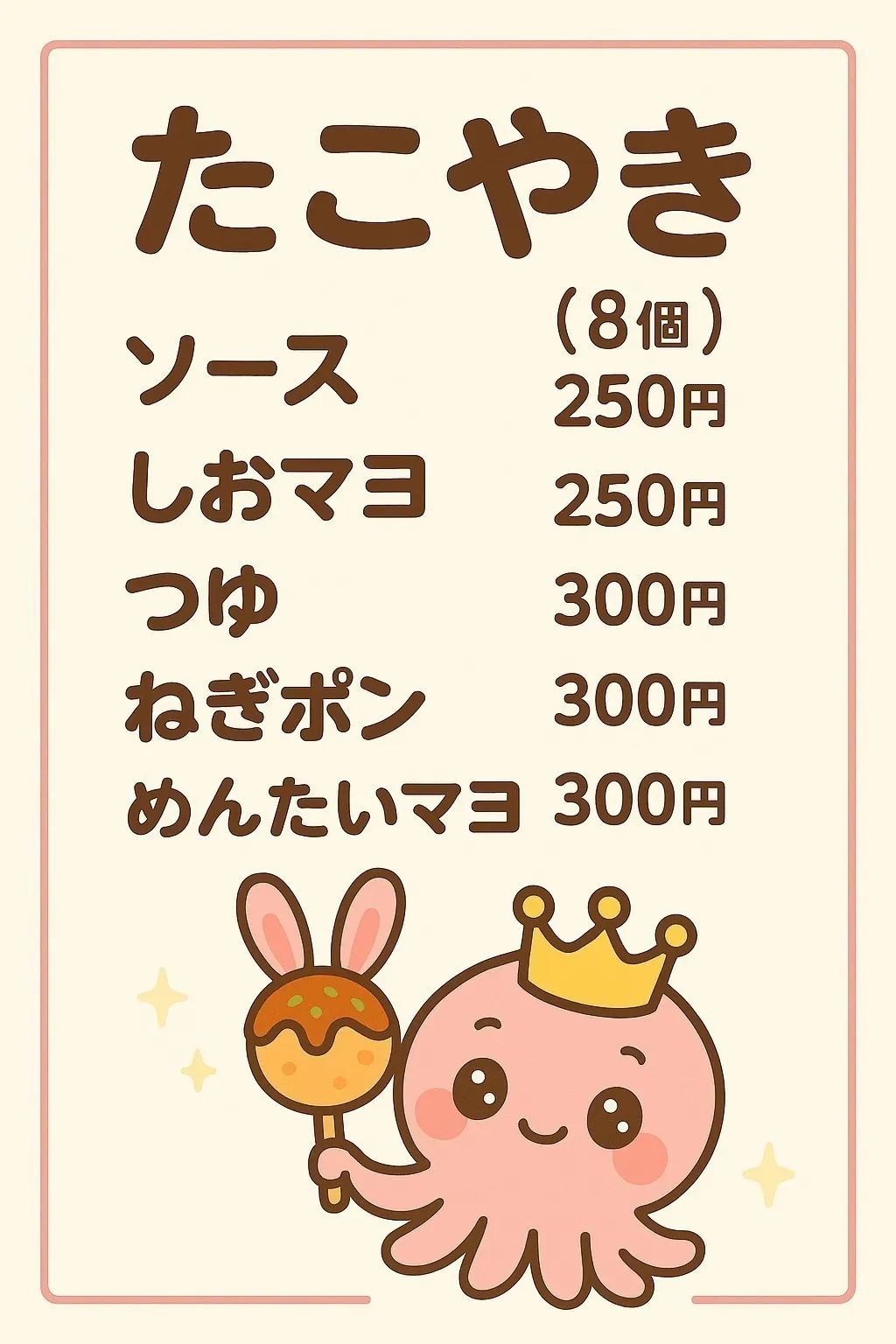 現在は、たこ焼8こ250円お子様達にも購入しやすい金額で販売しています。