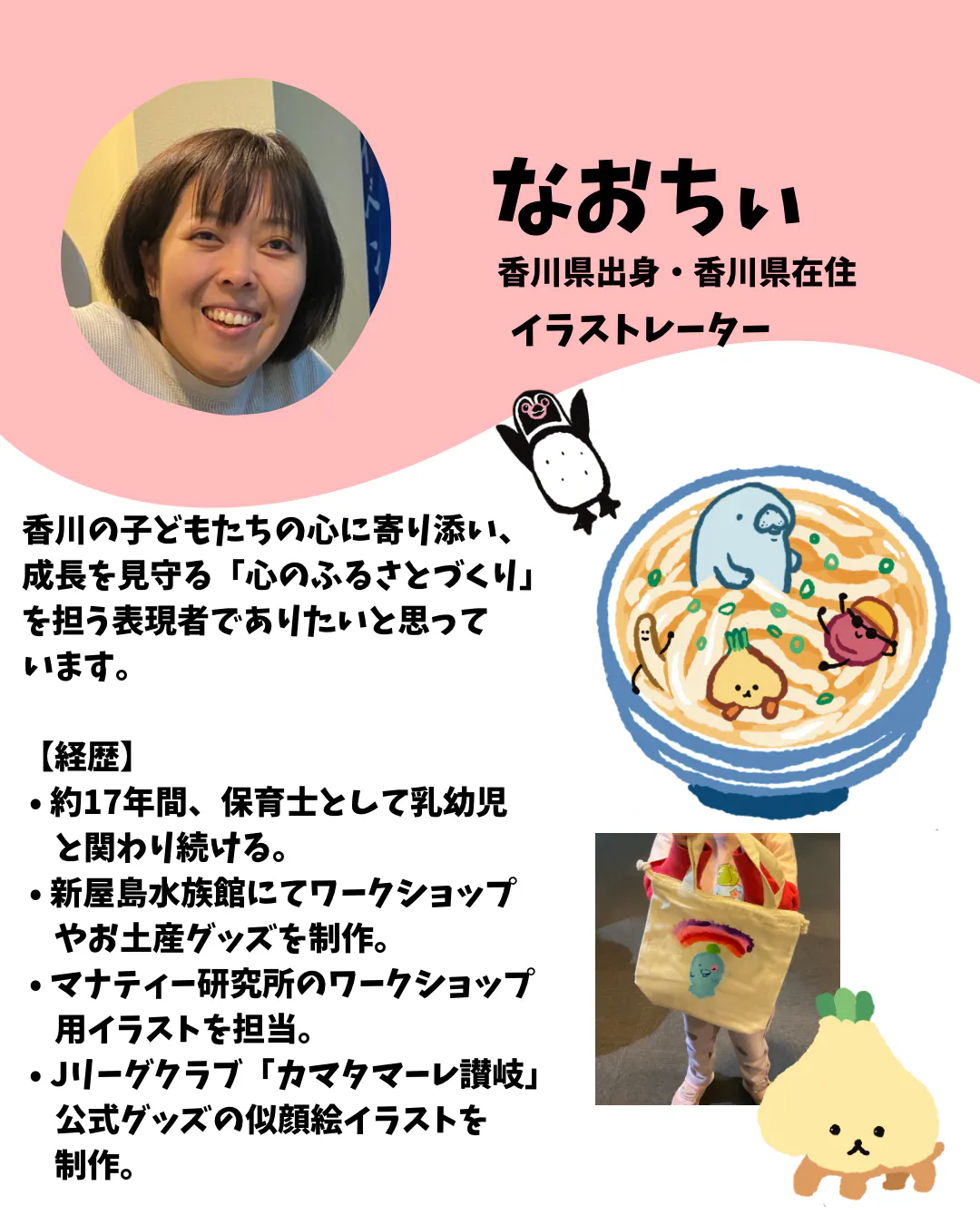 はじめまして。香川県でイラストレーターとして活動している、なおちぃです。