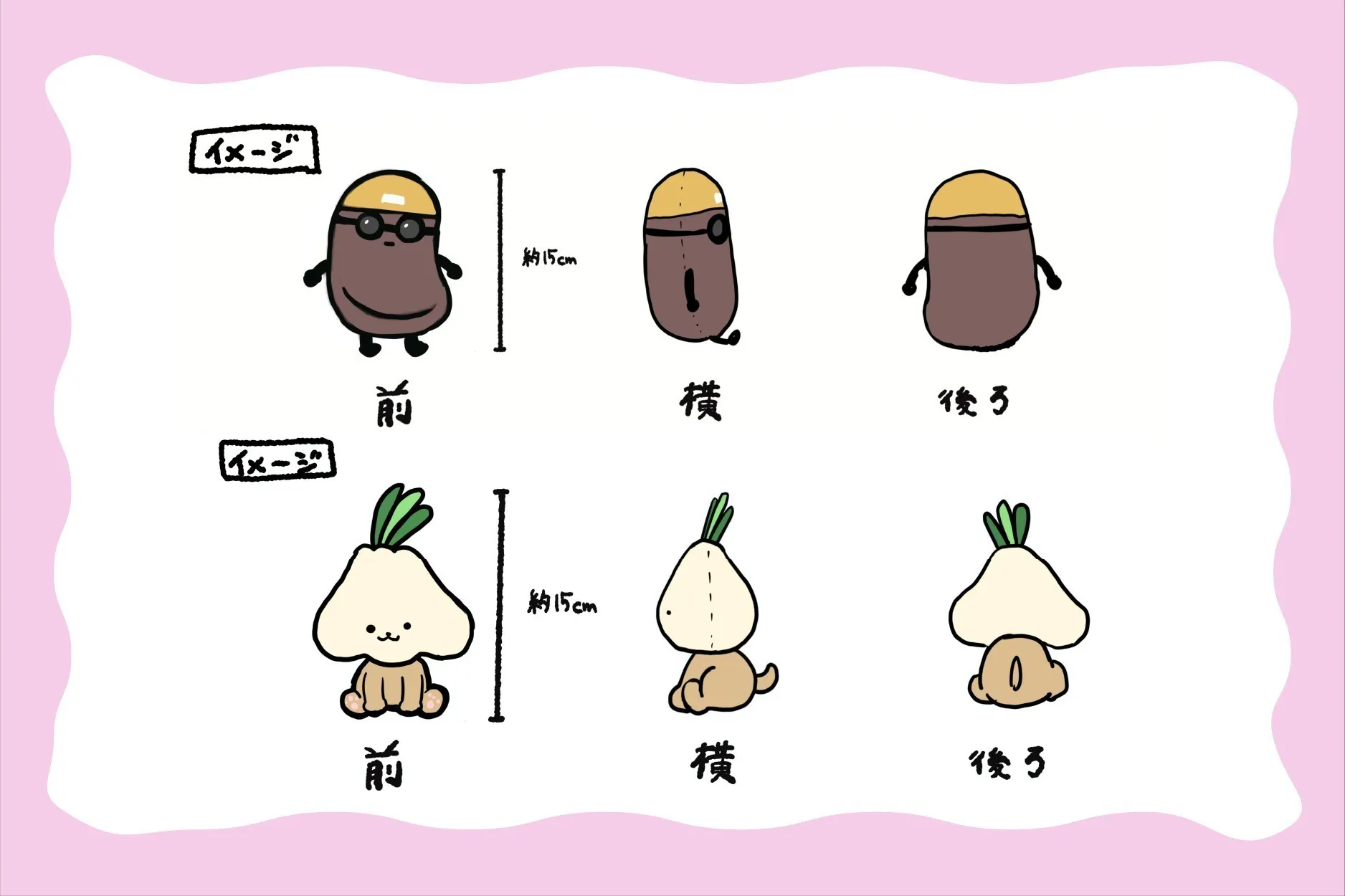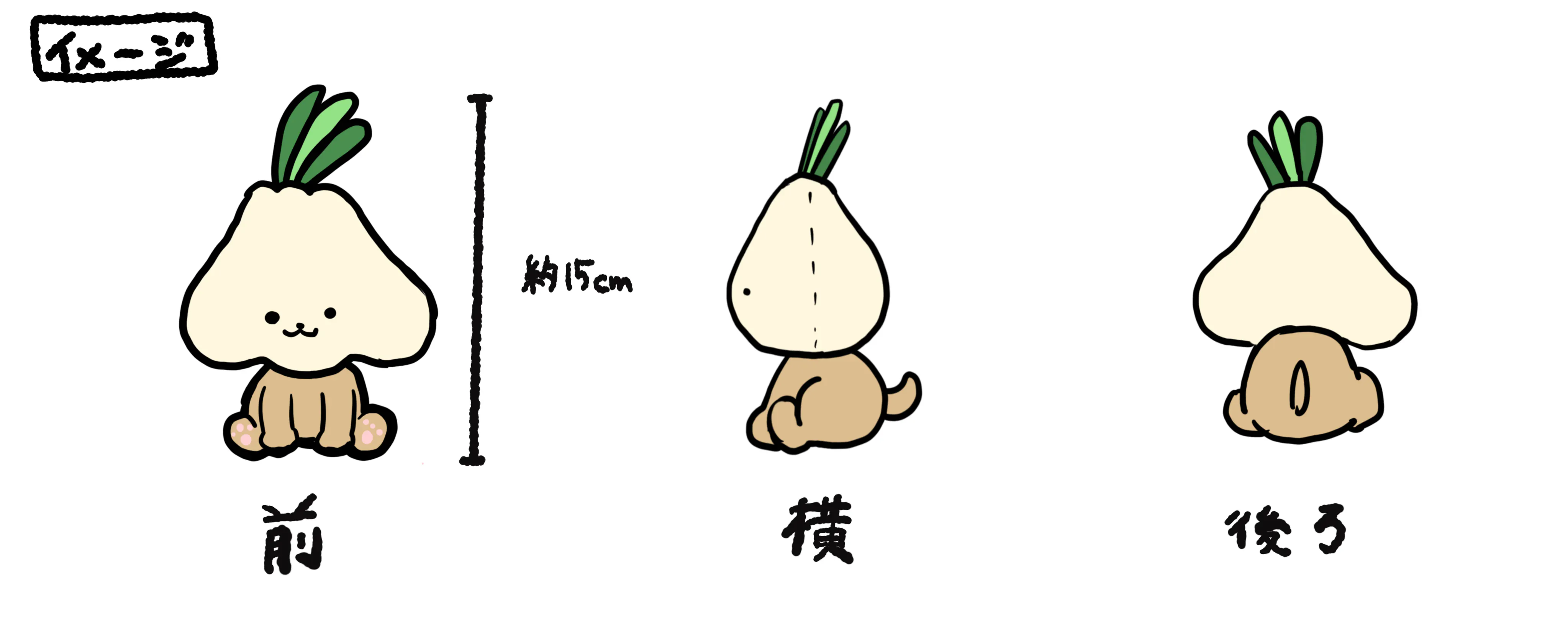 デザイン: にんにくの顔 + 子犬のような愛らしい体