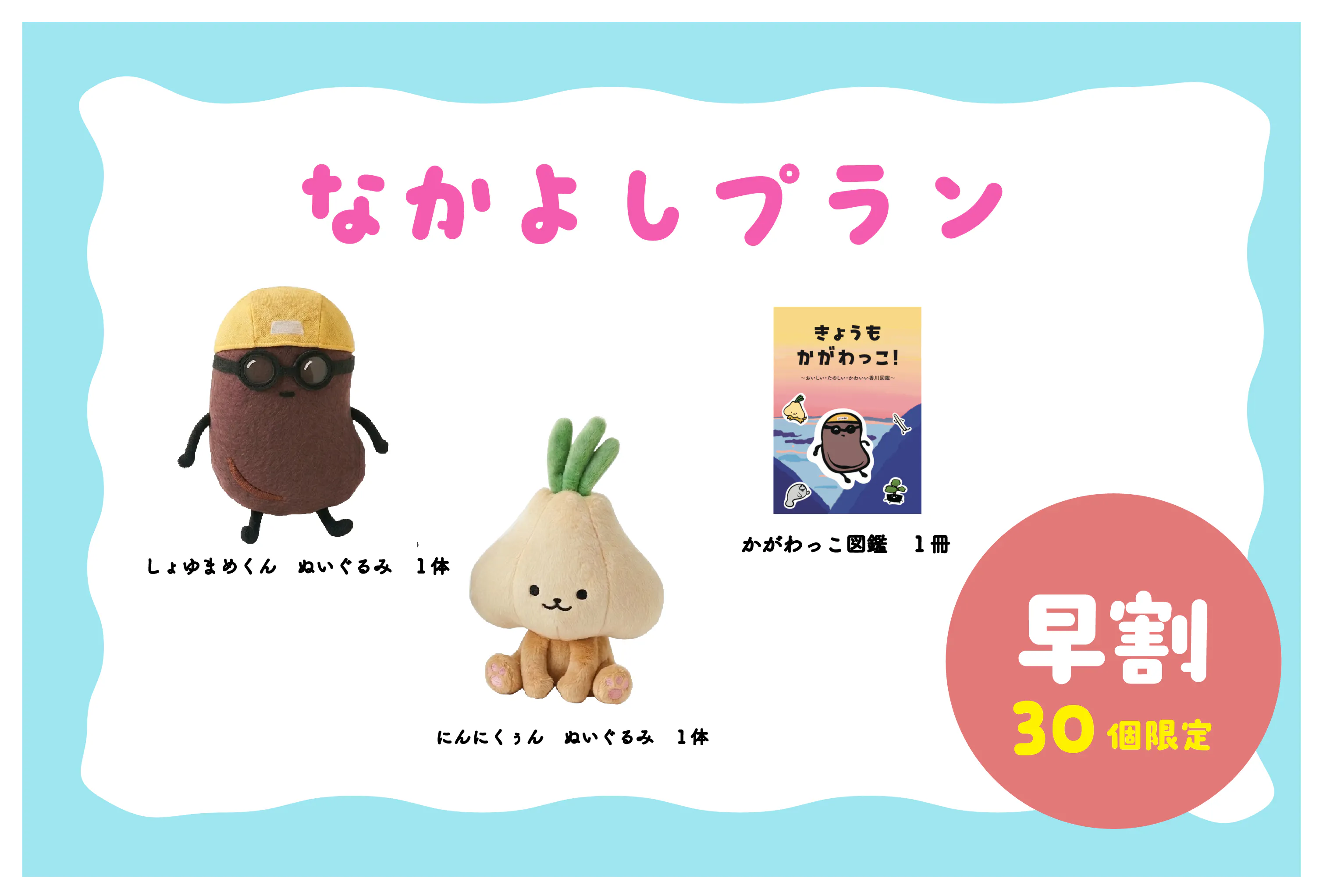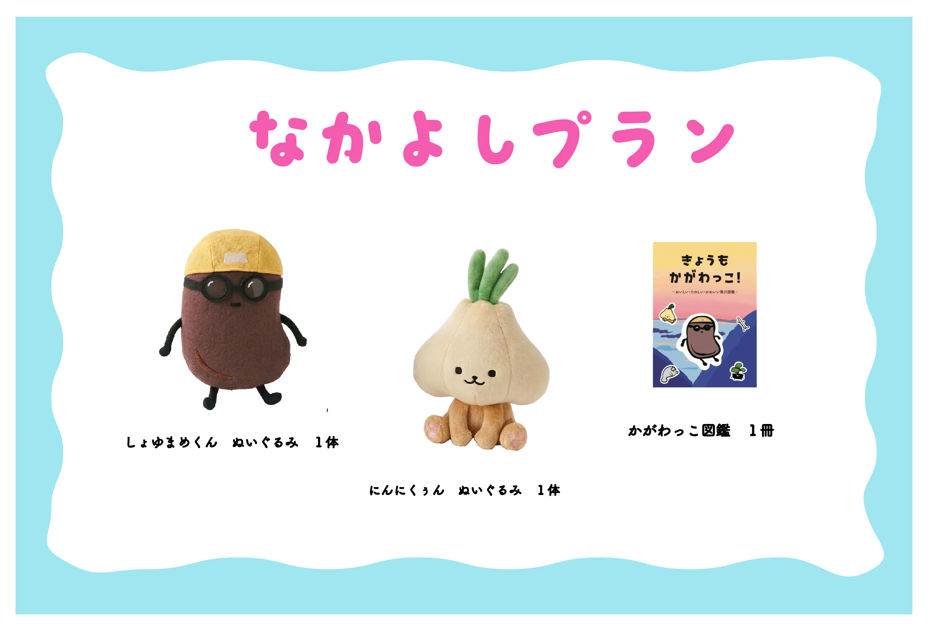 このプロジェクトでは、「かがわっこ」の中の『しょゆまめくん』『にんにくぅん』のぬいぐるみを制作し、香川県の魅力をより多くの方々に知っていただくことを目指しています。