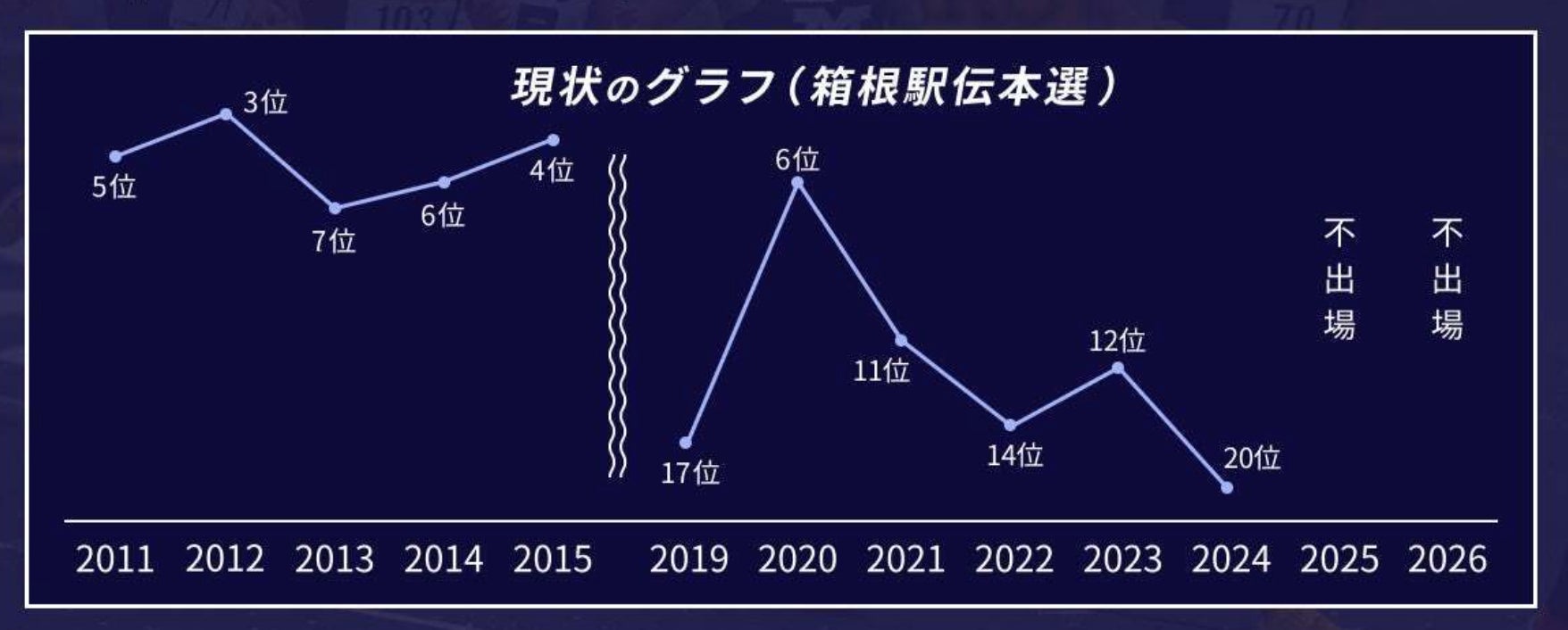 日頃より温かいご声援を賜り、心より御礼申し上げます。箱根駅伝の舞台への復活を目指し、日々真摯に競技に向き合っております。これまでの悔しさを胸に、皆様からのご支援を力に変え、チーム一丸となって挑戦してまいります。何卒ご支援のほど、よろしくお願い申し上げます。