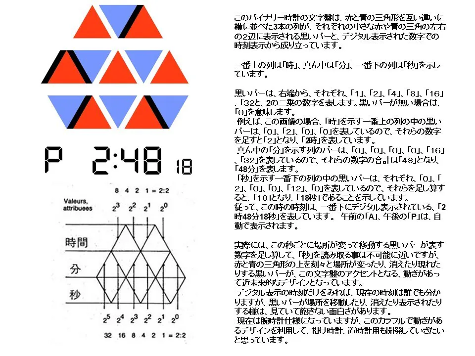 スイスの友人が発明したバイナリー時計をiOSアプリで蘇らせ、未来への時のアートを世界中に広めたいと願います。この時計はカラフルでリズミカルな動きで、時を刻みます。現在は、android携帯対応のアプリは完成して、今後IOS対応にアプリを開発して、掛け時計及び置時計も作りデザインガジェットにする。